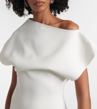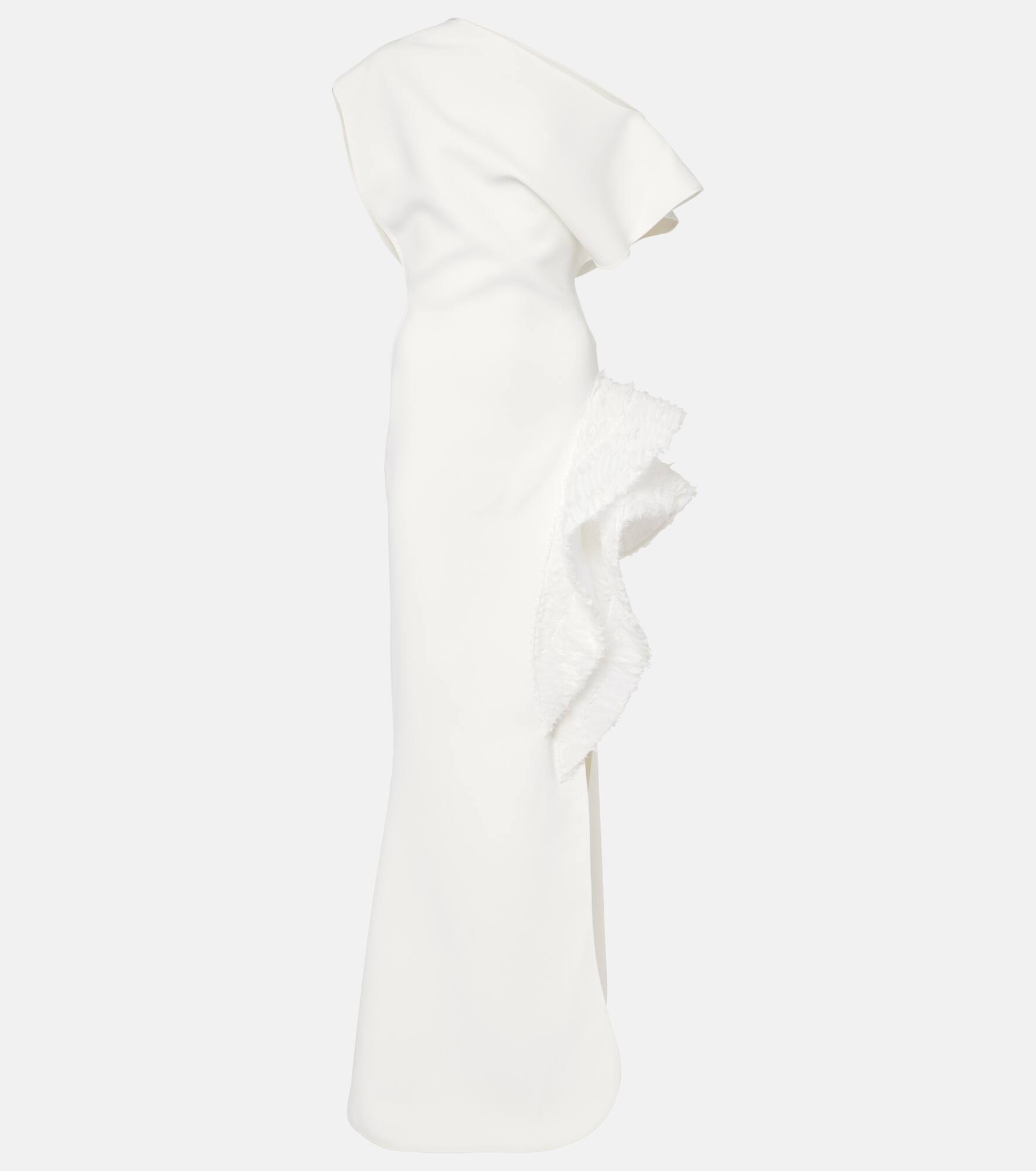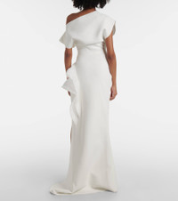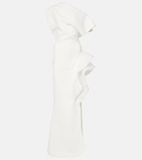 Wishing asymmetric ruffled tulle-trimmed crepe gown White