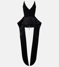 Expect the unexpected with Maticevski, a designer that incorporates artistry and sculptural influence into every piece. The Frame top is cut from lustrous satin to a peplum silhouette with a V-neckline and cascading ties at the sides. Product Details - Material: 100% polyester - Care instructions: dry clean - Made in Australia - Color: black - Designer color name: Black/Satin - Item color: black - Lining: 93% silk, 7% elastane - Closure: zipped back - Boning - Self-tie belt - Item number: P01121321 Size & Fit - True to size - Fits large to size - we recommend trying one size smaller - Strapless - Internal bra with wire support at the sides - Cinched waist - Non-stretchy fabric - Falls to the hip - The model seen in the picture is 178cm-5'10" and wearing a size UK 6