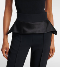 Expect the unexpected with Maticevski, a designer that incorporates artistry and sculptural influence into every piece. The Relate pants are cut from satin to a peplum, slim silhouette. Product Details - Material: 100% polyester - Care instructions: dry clean - Made in Australia - Color: black - Designer color name: Black/Satin - Trim: 93% silk, 7% elastane - Closure: zipped back - Pockets: slant pockets - Item number: P01121330 Size & Fit - True to size - Non-stretchy fabric - Slim-leg - High-waisted - The model seen in the picture is 178cm-5'10" and wearing a size UK 8