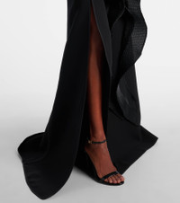 The Australian brand Maticevski is known for sculptural, subversive designs like the Synergies asymmetric ruffled gown. Made in the brands native Australia, the design features draped ruffle detailing, two side slits and an asymmetric neckline. Product Details - Material: 100% polyester - Care instructions: specialist clean - Made in Australia - Designer color name: Black - Item color: black - Details: 64% viscose, 21% silk, 11% polyamide, 4% elastane - Closure: zipped side - Hem: uneven - Sleeves: short-sleeved - Long vent - Item number: P01079600 Size & Fit - True to size - Cinched waist - Non-stretchy fabric - The model seen in the picture is 178cm-5'10" and wearing a size UK 8