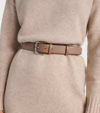 Max Mara represents the quintessence of Italian sophistication and expertise. This classic belt is crafted from leather, featuring a metal buckle, double loop, decorative stitching, and a 35mm width. Product Details - Material: leather - Lining: leather - Made in Italy - Designer color name: Clay - Item color: brown - Hardware color: brass - Item number: P01039809 Size & Fit - Width 3.5cm-1.5" - Buckle width 5cm-2"