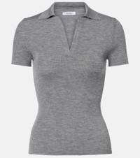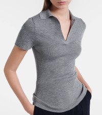 This Albero polo shirt from Max Mara is made of virgin wool with a ribbed-knit finish. The design showcases a fitted silhouette and a flattering buttonless front. Product Details - Material: 100% virgin wool - Care instructions: hand wash - Made in Romania - Color: beige - Designer color name: Grigio Chiaro - Item number: P01120761 Size & Fit - True to size - Cinched waist - Stretchy fabric - The model seen in the picture is 178cm-5'10" and wearing a size XS