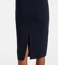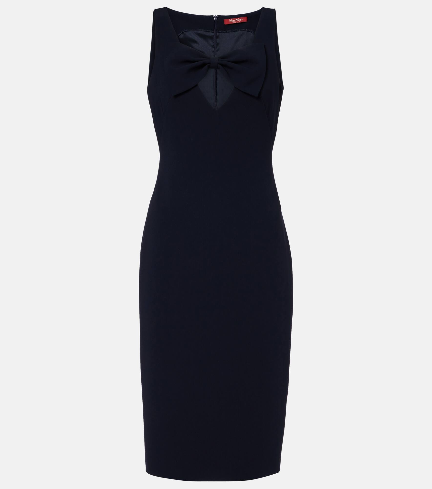 The Alfiere cady midi dress from Max Mara features an elegant design with its deep V-neckline adorned with a bow. This style is shaped to accentuate the silhouette, while the center-back slit allows for a comfortable drape. Product Details - Material: 71% triacetate, 29% polyester - Care instructions: machine wash at 30 degrees - Made in Poland - Designer color name: Blu - Item color: blue - Closure: zipped back - Item number: P01077348 Size & Fit - True to size - Fitted - Slightly stretchy fabric - slit length 28,0cm-11" - The model seen in the picture is 178cm-5'10" and wearing a size DE 34
