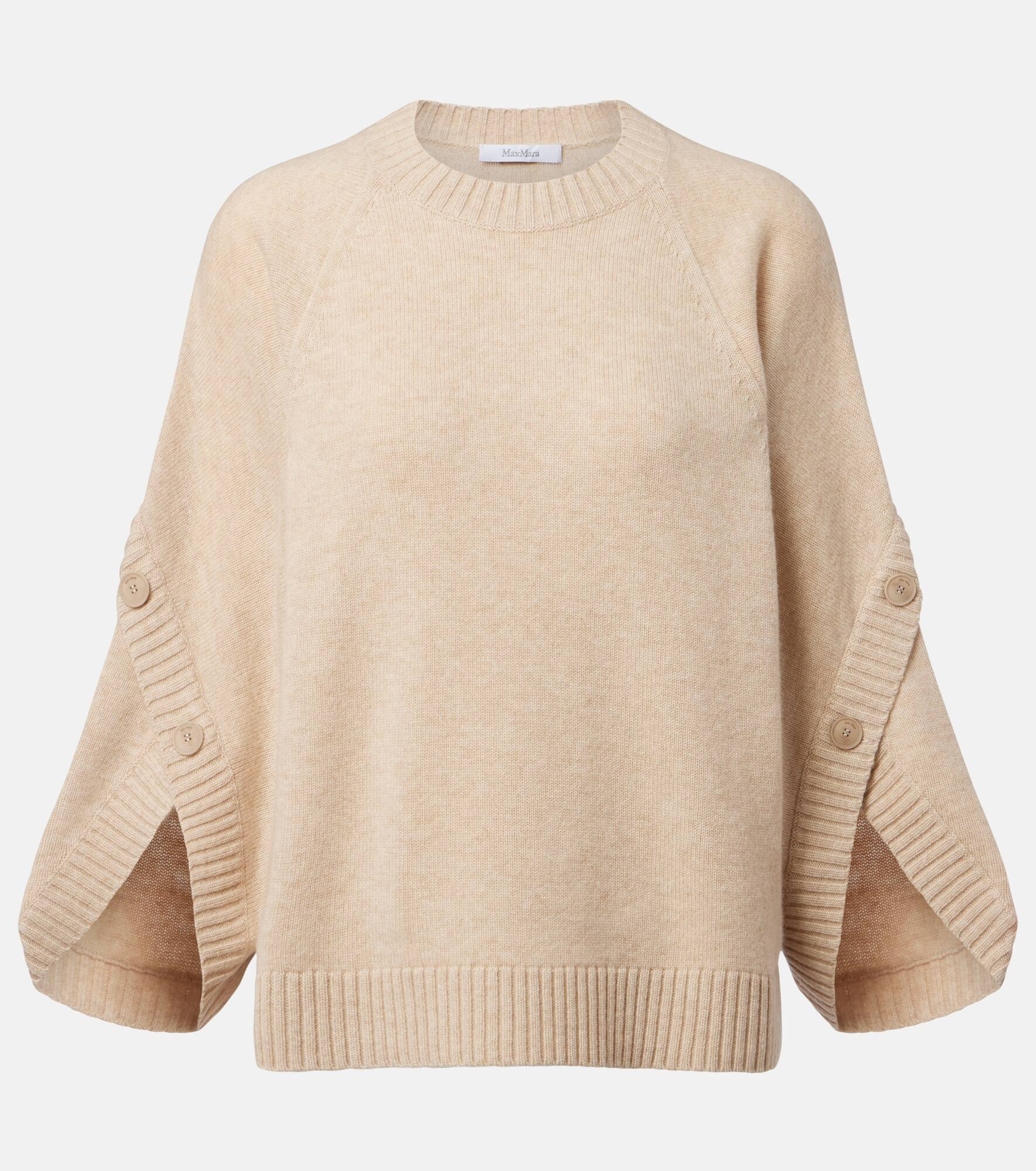 Enrich your knitwear rotation with the Ampex sweater from Max Mara. The design is made from a blend of wool and cashmere and features buttoned sleeves and ribbed trims. Product Details - Material: 70% wool, 30% cashmere - Care instructions: hand wash - Made in China - Designer color name: Pomice Mel. - Item color: beige - Collar: crewneck - Sleeves: raglan - Buttoned sleeves - Hem: ribbed - Item number: P01079583 Size & Fit - True to size - Designed for a loose fit - Falls to the hip - The model seen in the picture is 178cm-5'10" and wearing a size XS