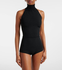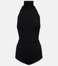 Boasting a rich manufacturing history, Max Mara represents the quintessence of Italian sophistication and expertise. The Apogeo bodysuit is a knitted style with a turtleneck. Product Details - Material: 68% viscose, 23% polyester, 8% polyamide, 1% elastane - Care instructions: hand wash - Made in Romania - Designer color name: Solido Nero - Item color: black - Closure: invisible zipper, zip and hook fastening - Item number: P01035742 Size & Fit - True to size - Low back - Fitted - Stretchy fabric - Low-cut leg - The model seen in the picture is 178cm-5'10" and wearing a size XS