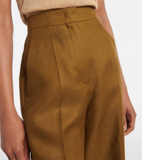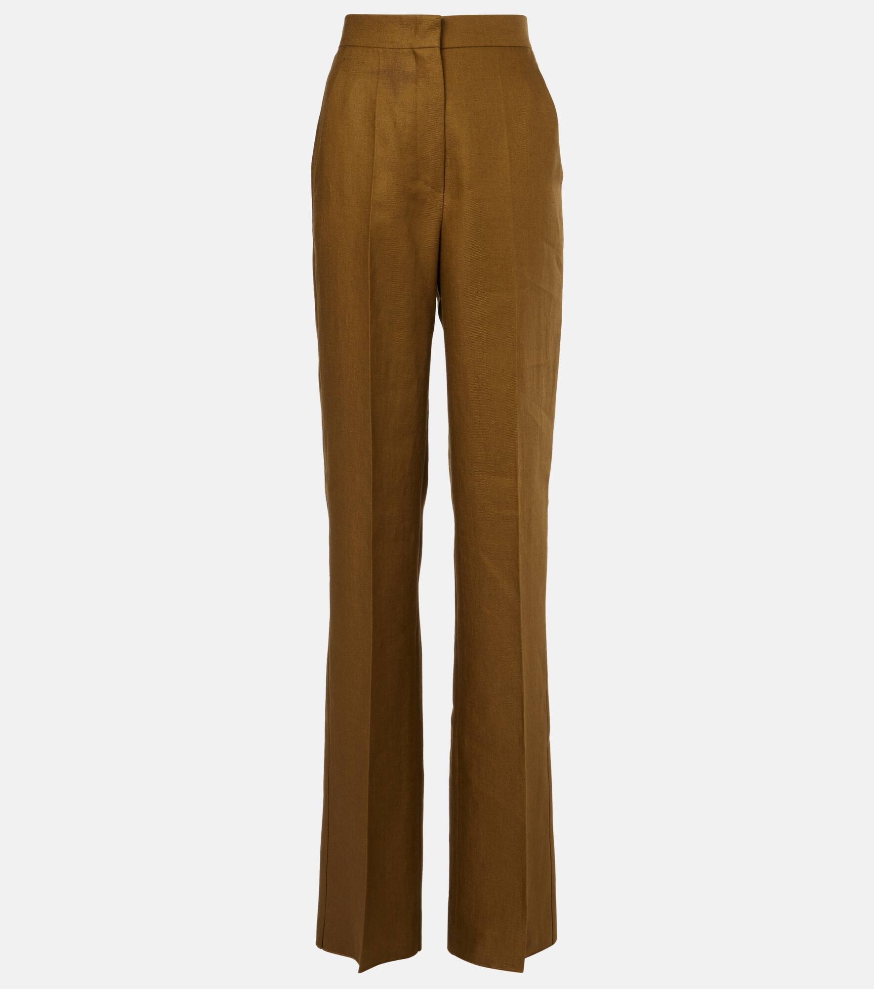 Product Details - Material: 100% linen - Care instructions: dry clean - Made in Italy - Designer color name: Olio - Item color: green - Closure: zip, hook, and button fastening - Pockets: side slit pockets - Item number: P01024034 Size & Fit - True to size - Non-stretchy fabric - Wide-leg - High-waisted - Unhemmed for tailoring - DT = German size - The model seen in the picture is 178cm-5'10" and wearing a size DT 34