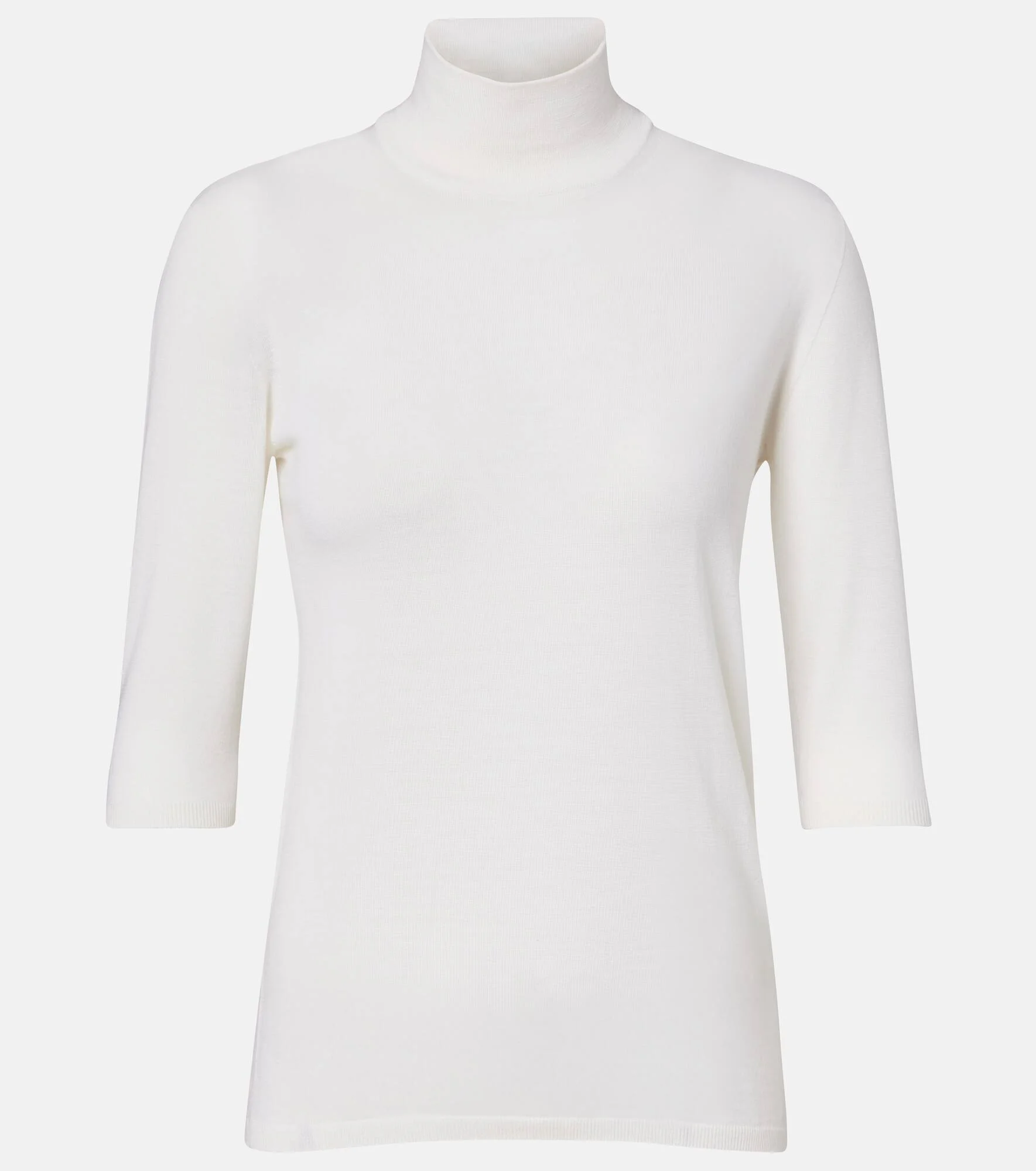 Boasting a rich manufacturing history, Max Mara represents the quintessence of Italian sophistication and expertise. The Boa turtleneck top is made from virgin wool and has elbow-length sleeves. Product Details - Material: 100% virgin wool - Care instructions: hand wash - Made in Italy - Color: white - Designer color name: Ivory - Item color: white - Collar: turtleneck - Cuff: ribbed - Hem: ribbed - Item number: P01120747 Size & Fit - True to size - Straight fit - Stretchy fabric - Falls to the hip - The model seen in the picture is 178cm-5'10" and wearing a size XS
