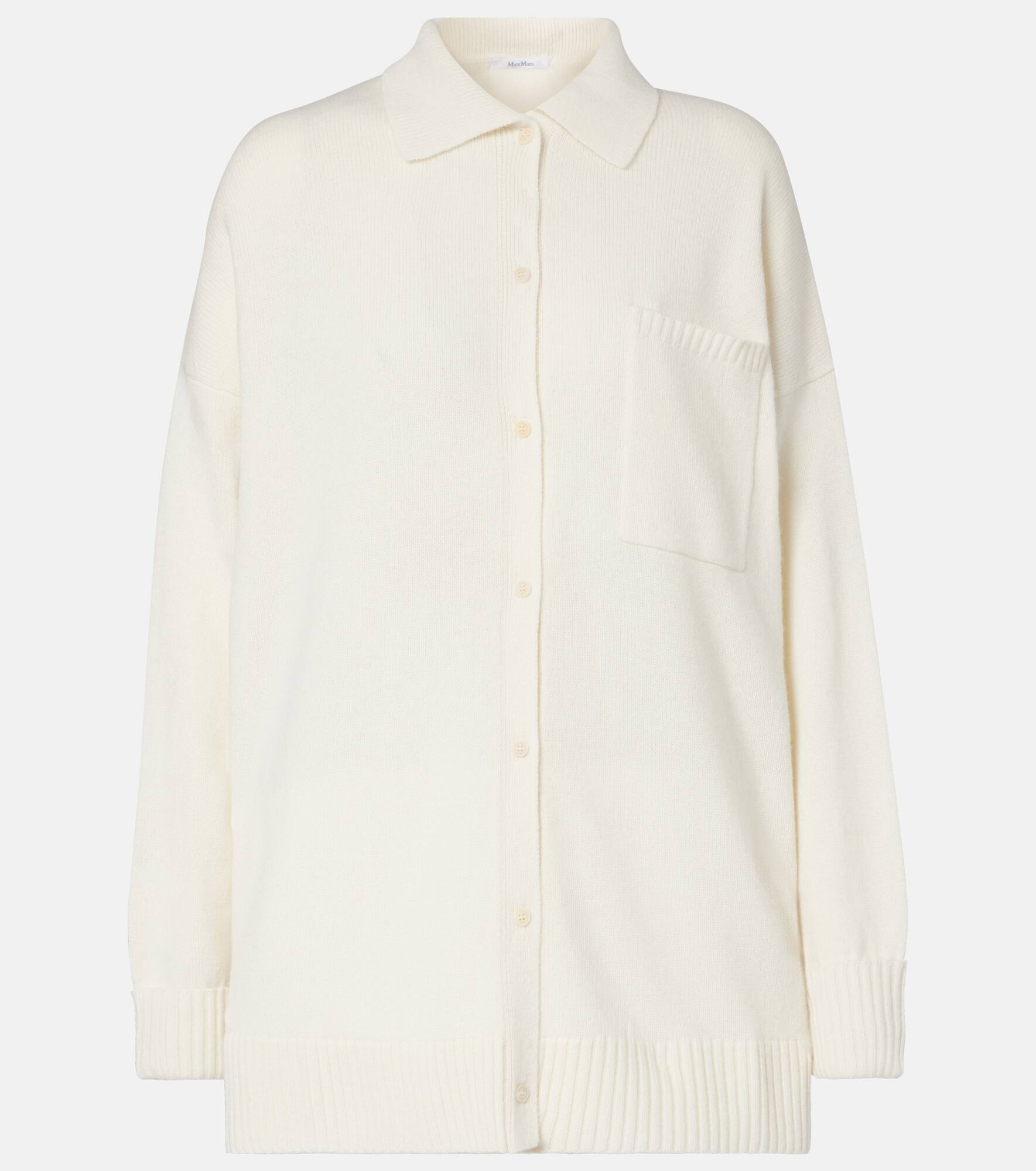 Boasting a rich manufacturing history, Max Mara represents the quintessence of Italian sophistication and expertise. The Bull cardigan has an oversized fit and is made from pure cashmere. Product Details - Material: 100% cashmere - Care instructions: dry clean - Made in China - Designer color name: Bianco - Item color: white - Pockets: angled chest pocket - Closure: buttoned front - Item number: P01090288 Size & Fit - True to size - Dropped shoulders - Oversized - Stretchy fabric - Falls below the hip - The model seen in the picture is 178cm-5'10" and wearing a size XS