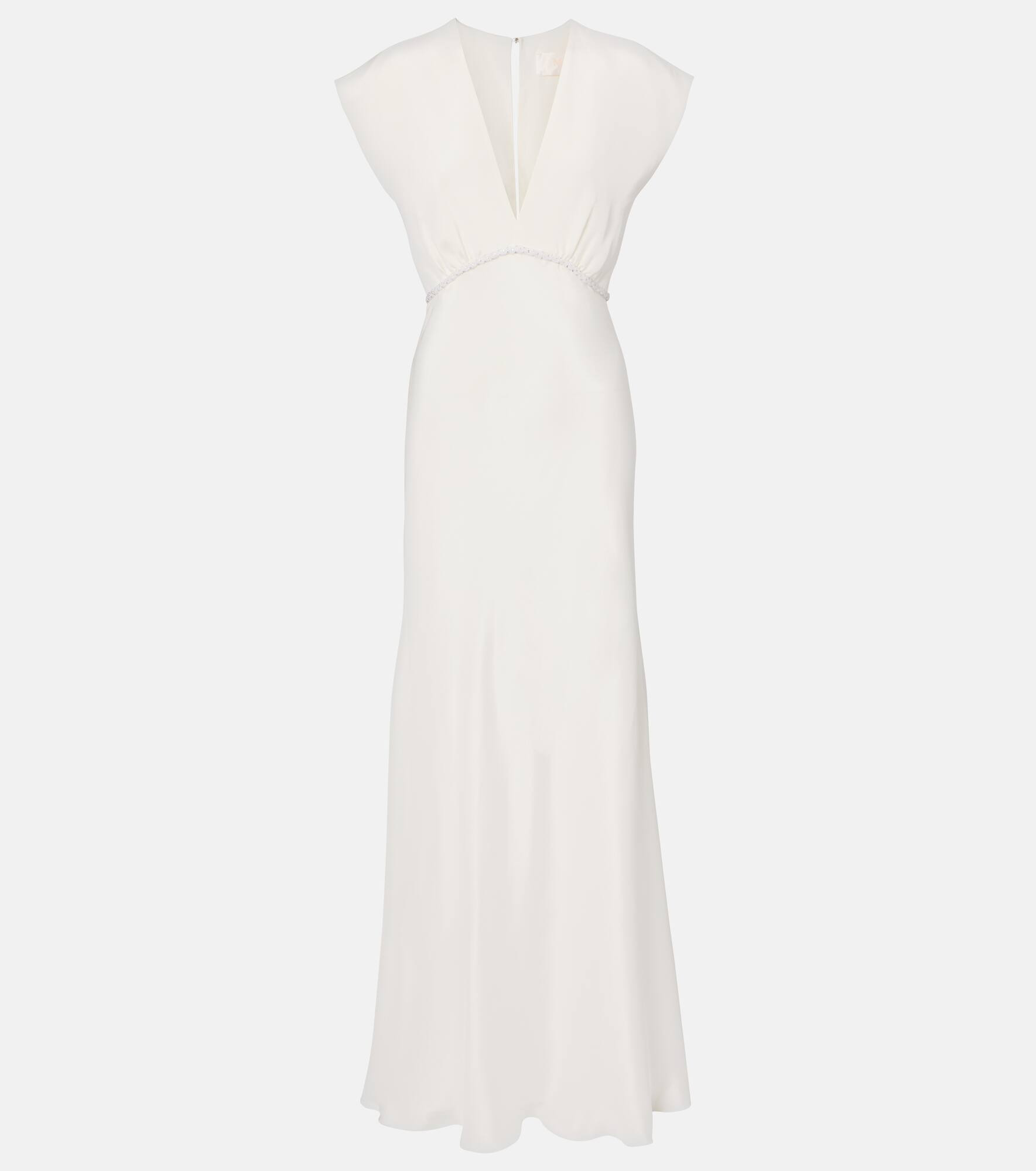 Max Mara represents the quintessence of Italian sophistication and expertise. Crafted from airy silk, the elegant Burano gown features a deep V-neckline and short sleeves. Product Details - Material: 100% silk - Care instructions: dry clean - Made in Italy - Designer color name: Bianco Seta - Item color: white - Lining: 100% silk - Lining II: 85% acetate, 10% silk, 5% polyamide - Item number: P01039713 Size & Fit - Fits large to size - we recommend trying one size smaller - Cinched waist - Non-stretchy fabric - The model seen in the picture is 178cm-5'10" and wearing a size DE 32