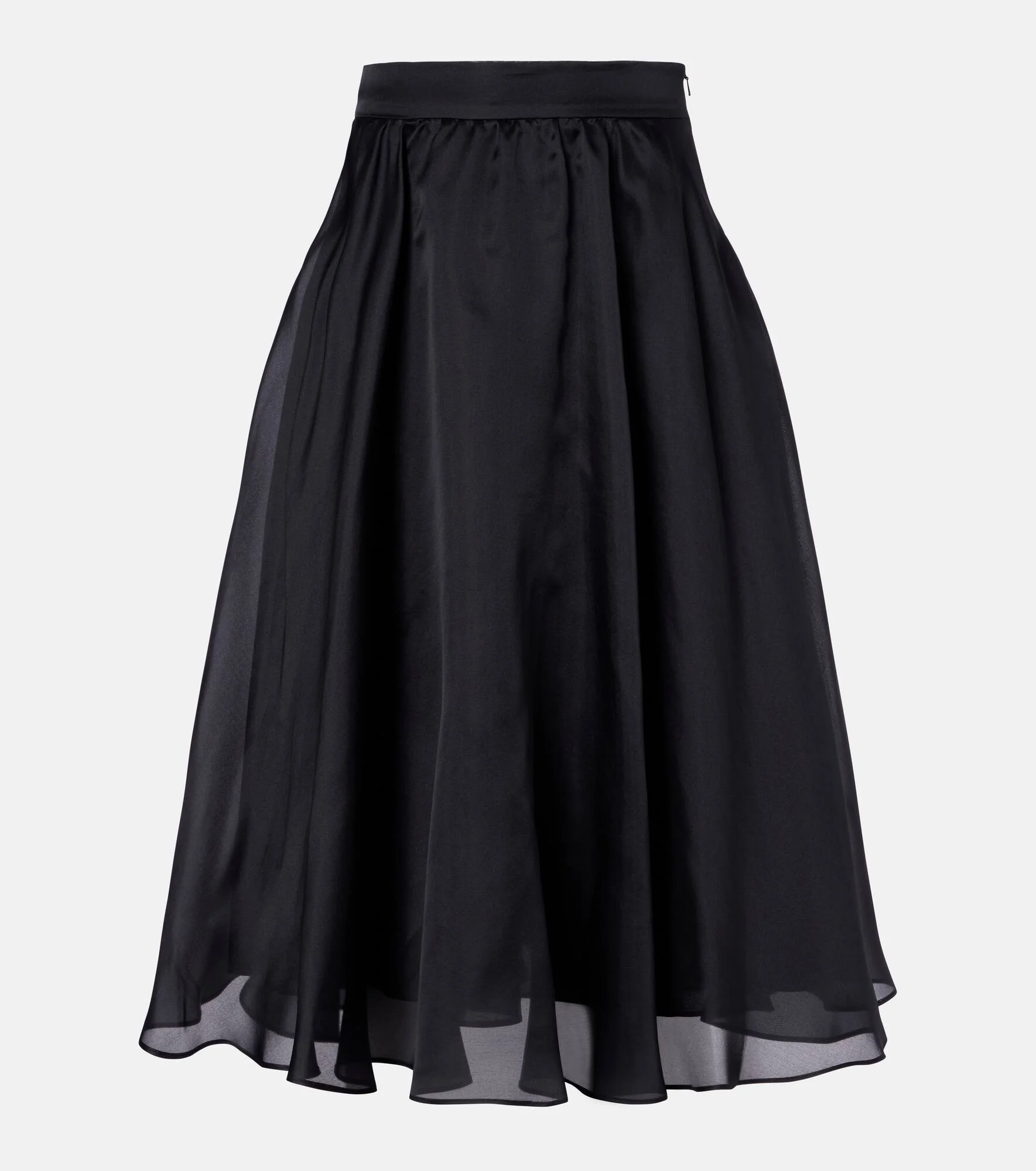 Boasting a rich manufacturing history, Max Mara represents the quintessence of Italian sophistication and expertise. The Calle midi skirt is cut from pure silk and features an A-line silhouette. Product Details - Material: 100% silk - Care instructions: dry clean - Made in Romania - Color: black - Designer color name: Nero - Lining: 100% cotton - Closure: concealed zipped side - Pockets: side slit pockets - Item number: P01124015 Size & Fit - True to size - Non-stretchy fabric - High-waisted - The model seen in the picture is 178cm-5'10" and wearing a size DE 34