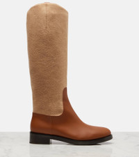 Boasting a rich manufacturing history, Max Mara represents the quintessence of Italian sophistication and expertise. Made in Italy from leather with wool panels, the Cavaliere knee-high boots are a classic riding style with rounded toes. Product Details - Upper: calf leather, wool - Lining: leather - Sole: leather insole, rubber sole - Toe shape: round toe - Made in Italy - Includes: shoe box - Designer color name: Mm Brown - Item color: brown, beige - Item number: P01097585 Size & Fit - True to size - European sizes - 4cm-1.5" heel (size EU 38) - 2cm-1" platform (size EU 38) - 41cm-16" shaft height (size EU 38) - 38cm-15" shaft width (size EU 38) - shaft width measured on largest part of boot