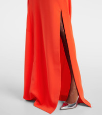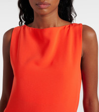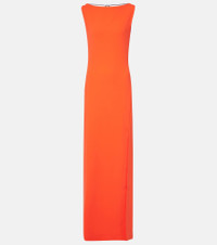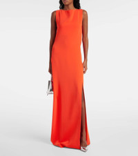 Boasting a rich manufacturing history, Max Mara represents the quintessence of Italian sophistication and expertise. Made from fluid cady, this gown perfectly embodies the brand's ethos with its simple silhouette, draped open back, and sleek chain detail. Product Details - Material: 64% triacetate, 36% polyester - Care instructions: machine wash at 30 degrees - Made in Italy - Designer color name: Cinabrio - Detachable chain - Item number: P01035724 Size & Fit - True to size - Low back - Straight fit - Non-stretchy fabric - slit length 77cm-30.5" - The model seen in the picture is 178cm-5'10" and wearing a size DT 34