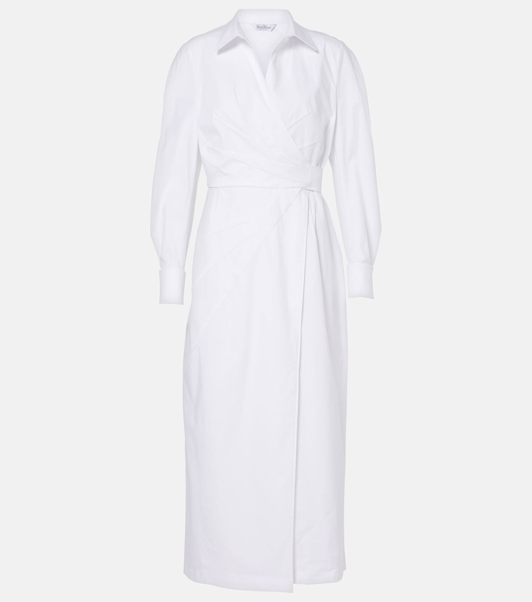 Halfway between a shirt and a wrap dress, this versatile piece from Max Mara is crafted from cotton twill with a touch of stretch and finished with crisp pleated details on the front and sleeves. Product Details - Material: 97% cotton, 3% elastane - Care instructions: hand wash - Made in Italy - Designer color name: BIanco Ottico - Closure: button fastening - Item number: P01035737 Size & Fit - True to size - Cinched waist - Non-stretchy fabric - DT = German size - The model seen in the picture is 178cm-5'10" and wearing a size DT 34