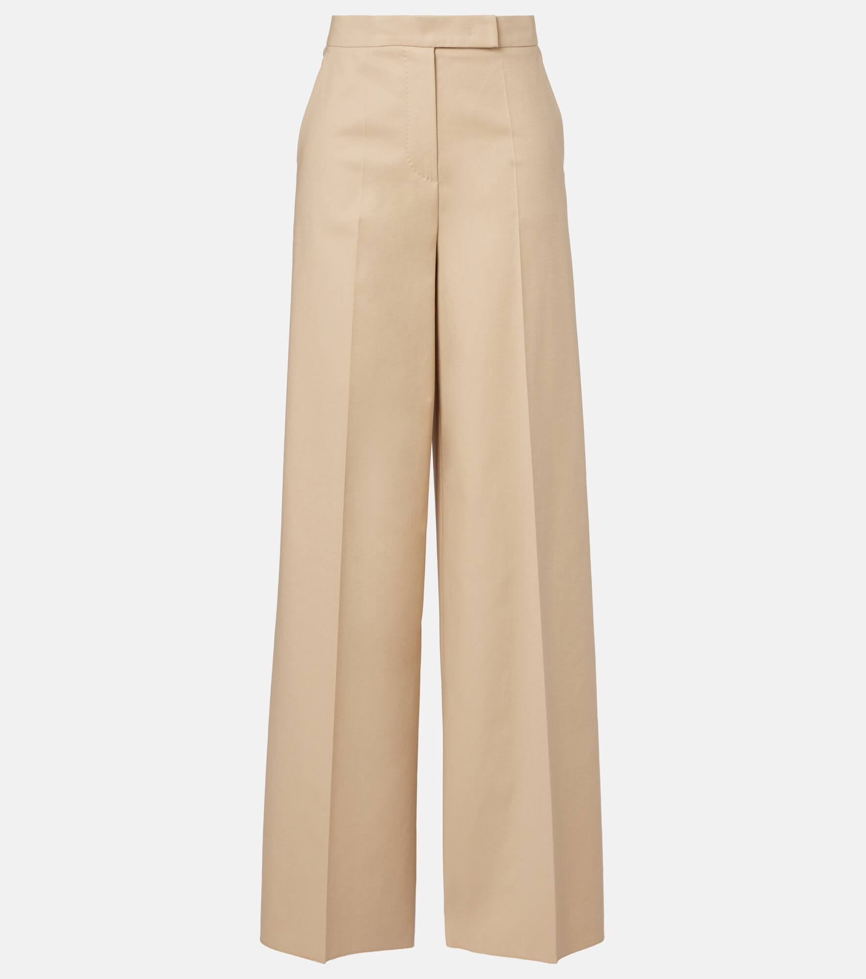 Crafted in Italy from a cotton-blend, these wide-leg pants from Max Mara showcase a single pleat at the front. This design features side slit pockets. Product Details - Material: 95% cotton, 5% elastane - Care instructions: hand wash - Made in Italy - Designer color name: Pomice - Item color: beige - Closure: zip, hook, and button fastening - Single pleat - Pockets: side slit pockets - Item number: P01079515 Size & Fit - True to size - Non-stretchy fabric - Wide-leg - High-waisted - Unhemmed for tailoring - The model seen in the picture is 178cm-5'10" and wearing a size DE 34