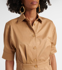 Product Details - Material: 100% cotton - Care instructions: dry clean - Made in Italy - Designer color name: Sabbia - Closure: partially buttoned front, zipper fastening - Pockets: side slit pockets, cargo pockets - Belt loops - Details: 100% leather - Contains non-textile parts of animal origin - Item number: P01024074 Size & Fit - True to size - Designed for a loose fit - Non-stretchy fabric - Wide-leg - High-waisted - DT = German size - The model seen in the picture is 178cm-5'10" and wearing a size DT 34