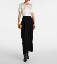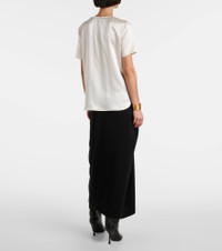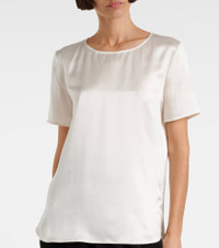 Max Mara is renowned for timeless elegance and refined craftsmanship. This silk satin T-shirt features a crewneck and a relaxed silhouette, making it a versatile yet polished wardrobe essential. Product Details - Material: 100% silk - Care instructions: dry clean - Made in Italy - Designer color name: Bianco Seta - Item number: P01012370 Size & Fit - True to size - Straight fit - Non-stretchy fabric - Falls to the hip - DT = German size - The model seen in the picture is 178cm-5'10" and wearing a size DT 34