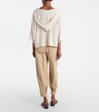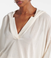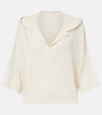 Boasting a rich manufacturing history, Max Mara represents the quintessence of Italian sophistication and expertise. The Didy shirt is knitted from a comfortable cotton blend and features a V-neckline with a hood for a practical finish. Product Details - Material: 55% cotton, 45% viscose - Care instructions: hand wash - Made in China - Designer color name: Tela - Item color: ivory - Polo shirt - Sleeves: ¾ length - Hood - Item number: P01079595 Size & Fit - True to size - Dropped shoulders - Semi-sheer - Designed for a loose fit - Slightly stretchy fabric - Falls to the hip - The model seen in the picture is 178cm-5'10" and wearing a size XS
