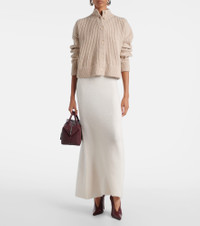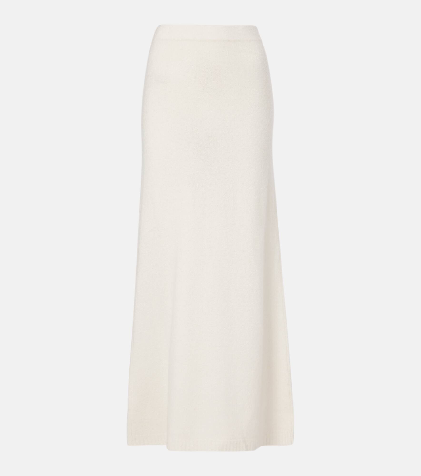 Boasting a rich manufacturing history, Max Mara represents the quintessence of Italian sophistication and expertise. Crafted from a cashmere-blend, the Dorina maxi skirt features a ribbed hem and an elasticated waistband. Product Details - Material: 76% cashmere, 21% polyamide, 3% elastane - Care instructions: hand wash - Made in China - Designer color name: Avorio - Item color: white - Elasticated waistband - Hem: ribbed - Includes: dust bag - Item number: P01090308 Size & Fit - True to size - Elasticated waist - Stretchy fabric - The model seen in the picture is 178cm-5'10" and wearing a size XS