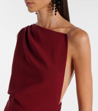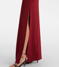 Boasting a rich manufacturing history, Max Mara represents the quintessence of Italian sophistication and expertise. This maxi dress was made in Italy and has an asymmetrical shoulder with a removable strap. Product Details - Material: 70% fabric, 30% polyester - Care instructions: dry clean - Made in Italy - Designer color name: Lampone - Item color: red - Material II: 100% silk - Closure: concealed zipper, zipped side - Side slits - Detachable shoulder straps - Item number: P01096043 Size & Fit - True to size - Low back - Cinched waist - Slightly stretchy fabric - slit length 71cm-28" - The model seen in the picture is 178cm-5'10" and wearing a size DE 34