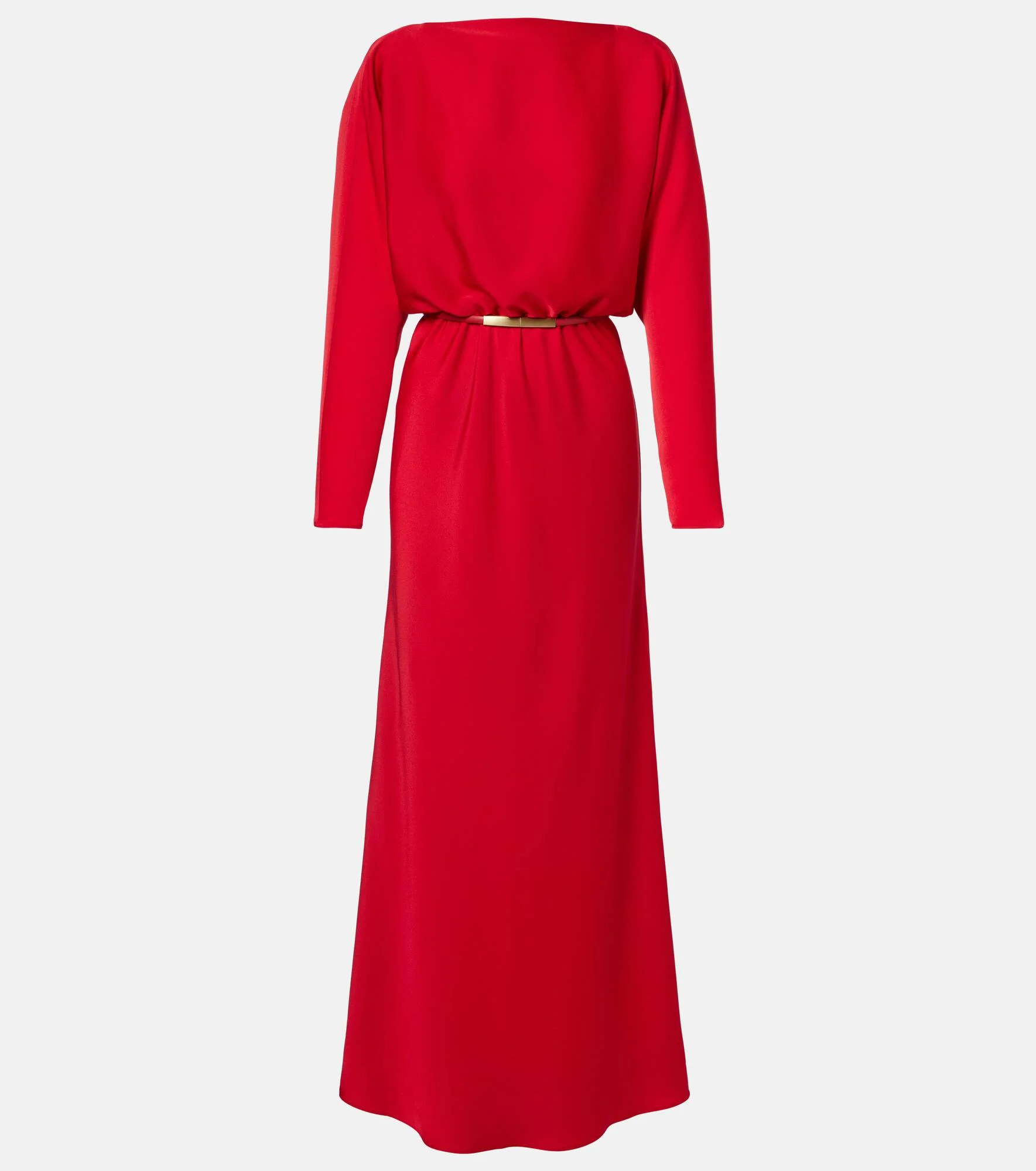 This gown by Max Mara is guaranteed to make an entrance. Crafted from soft satin, the fluid silhouette features an elegant detachable belt and a draped back. Product Details - Material: 77% triacetate, 23% polyester - Care instructions: machine wash at 30 degrees - Made in Romania - Color: red - Designer color name: Rosso - Lining: 100% polyester - Detachable belt - Item number: P01124024 Size & Fit - True to size - Low back - Cinched waist - Non-stretchy fabric - The model seen in the picture is 178cm-5'10" and wearing a size DE 34