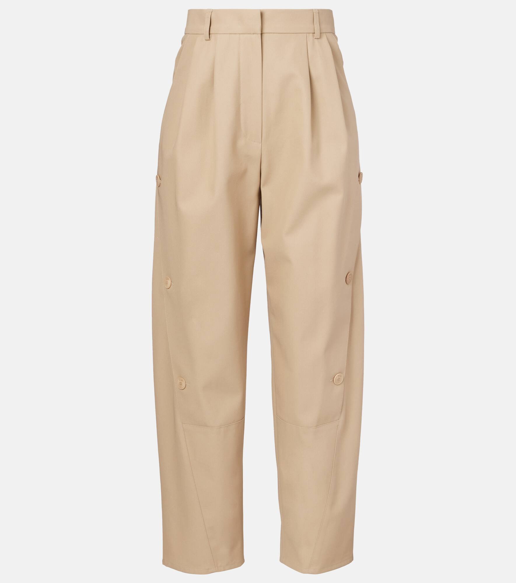 Crafted in Italy from pure cotton, the Duomo straight pants from Max Mara showcase button details all over the legs. This design features a high-rise construction. Product Details - Material: 100% cotton - Care instructions: dry clean - Made in Italy - Designer color name: Pomice - Item color: beige - Item number: P01079550 Size & Fit - True to size - Non-stretchy fabric - Straight leg - High-waisted - The model seen in the picture is 178cm-5'10" and wearing a size DE 34