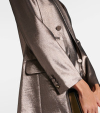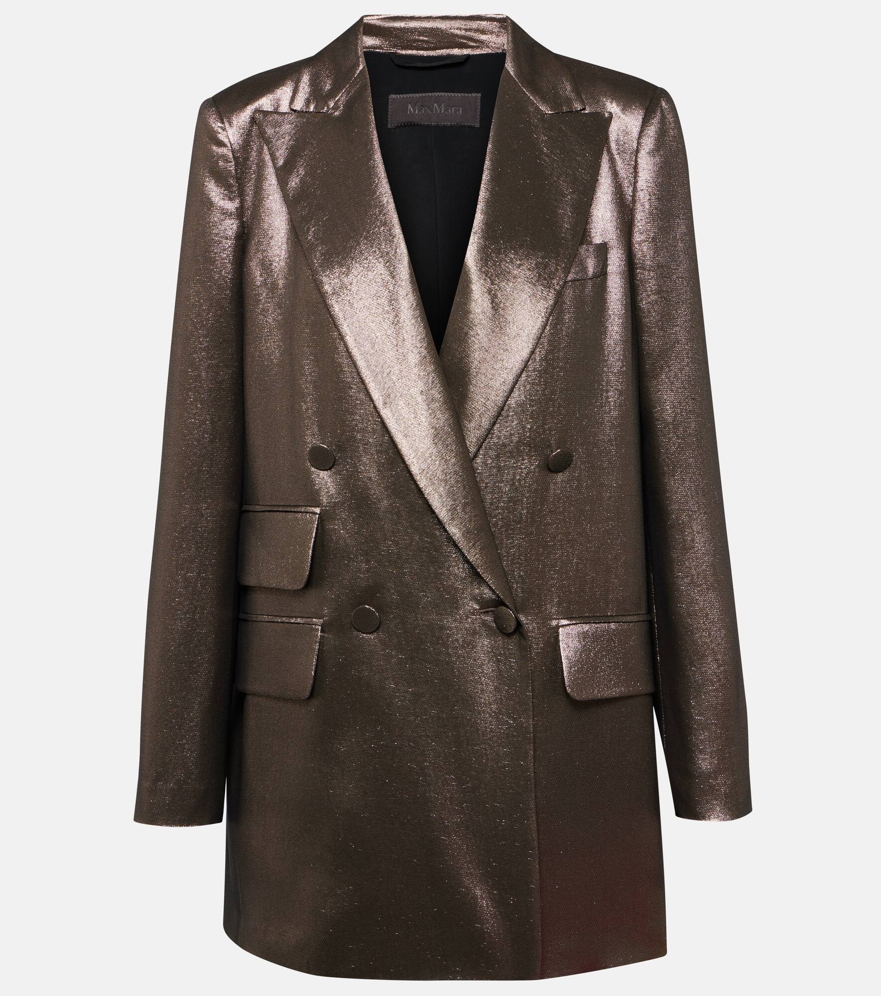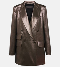 Product Details - Material: 61% silk, 39% metallic fibres - Vent: double - Care instructions: dry clean - Made in Italy - Designer color name: Bronzo - Lining: 85% polyamide, 10% silk, 5% elastane - Closure: double-breasted (four buttons) - Pockets: flap pockets, angled chest pocket - Item number: P00911357 Size & Fit - True to size - Shoulder pad inserts - Designed for a loose fit - Non-stretchy fabric - Falls below the hip - DT = German size - The model seen in the picture is 178cm-5'10" and wearing a size DT 34