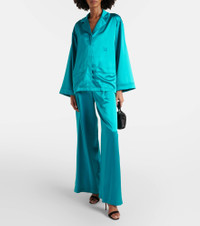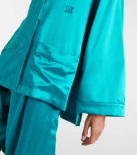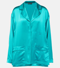 Product Details - Material: 100% silk - Care instructions: dry clean - Made in Italy - Designer color name: Laguna - Closure: concealed buttoned front - Pockets: patch pockets - Item number: P00911373 Size & Fit - True to size - Dropped shoulders - Designed for a loose fit - Non-stretchy fabric - Falls below the hip - DT = German size - The model seen in the picture is 178cm-5'10" and wearing a size DT 34