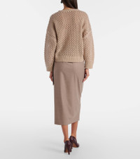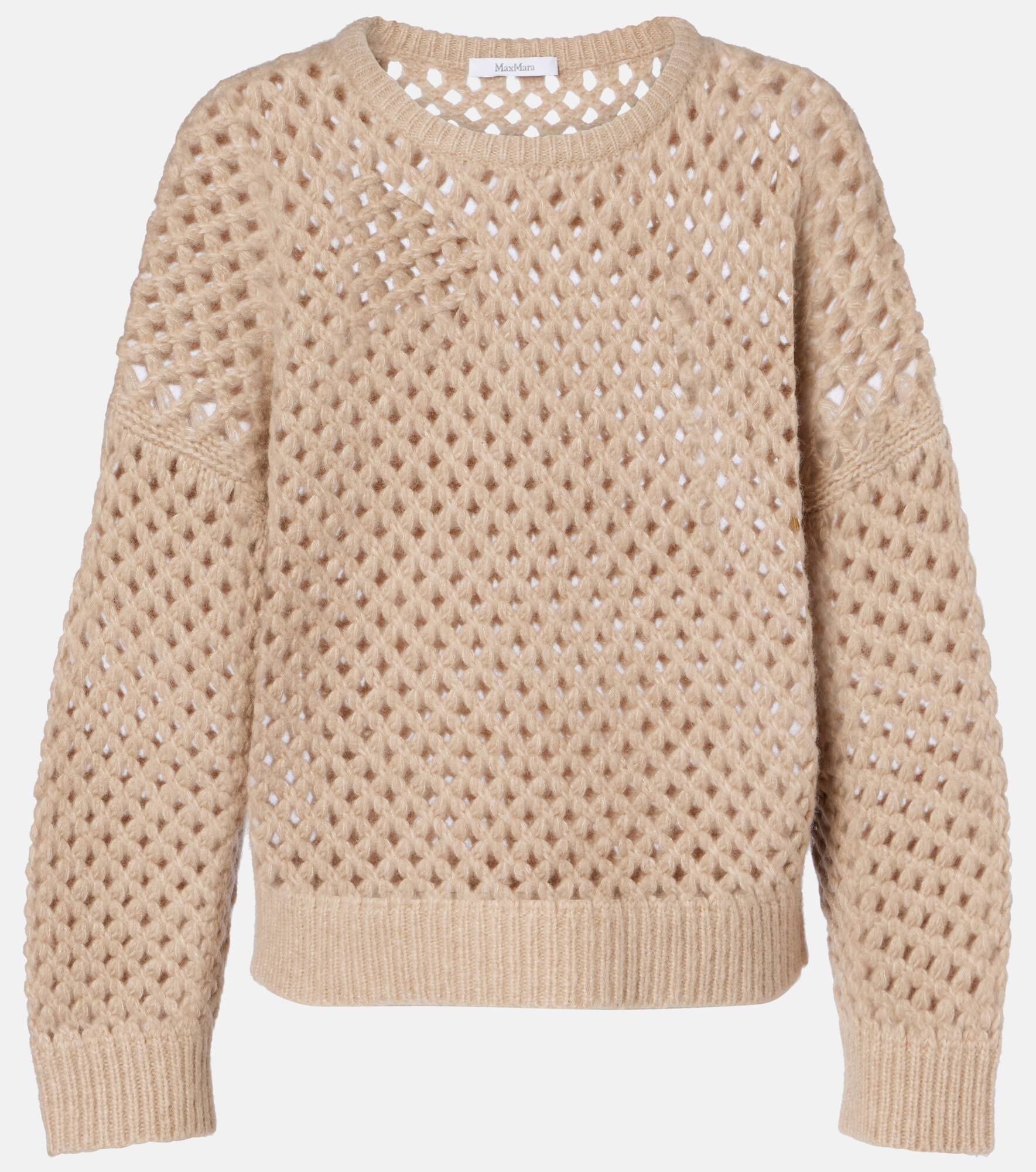 Boasting a rich manufacturing history, Max Mara represents the quintessence of Italian sophistication and expertise. Crafted from soft cashmere and silk, the Essen open-knit sweater is a wardrobe essential that combines warmth with refined comfort. Product Details - Material: 75% cashmere, 25% silk - Care instructions: dry clean - Made in China - Designer color name: Cacha Chiaro - Item color: beige - Cuff: ribbed - Hem: ribbed - Item number: P01090304 Size & Fit - True to size - Dropped shoulders - Sheer - Designed for a loose fit - Non-stretchy fabric - Falls to the hip - The model seen in the picture is 178cm-5'10" and wearing a size XS