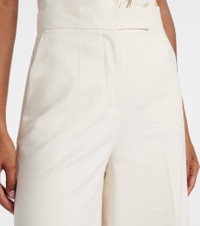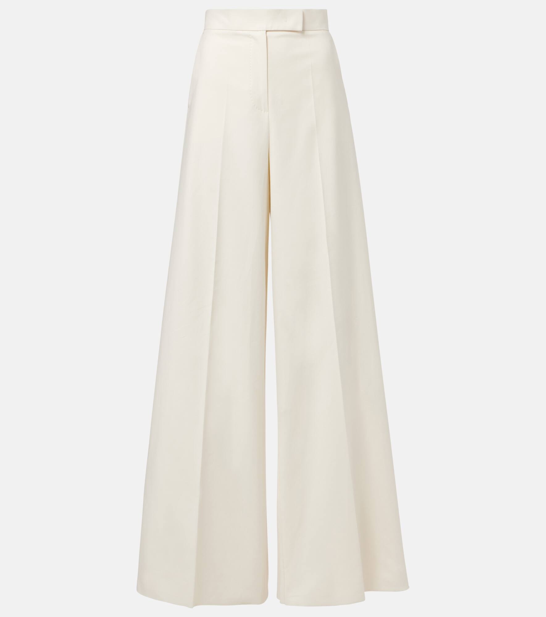 Boasting a rich manufacturing history, Max Mara represents the quintessence of Italian sophistication and expertise. Shaped into a contemporary, pleated wide-leg silhouette, the Finish pants are thoughtfully crafted from a cotton-blend. Product Details - Material: 95% cotton, 5% elastane - Care instructions: hand wash - Made in Italy - Designer color name: Bianco - Item color: ivory - Closure: zip, hook, and button fastening - Pockets: slant pockets - Single pleat - Hem: unfinished (ready for alteration) - Item number: P01079514 Size & Fit - True to size - Non-stretchy fabric - Wide-leg - High-waisted - Unhemmed for tailoring - The model seen in the picture is 178cm-5'10" and wearing a size DE 34