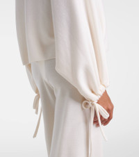 Boasting a rich manufacturing history, Max Mara represents the quintessence of Italian sophistication and expertise. The Frais sweater is crafted from virgin wool and ties at the arm cuffs. Product Details - Material: 100% virgin wool - Care instructions: hand wash - Made in China - Designer color name: Bianco - Item color: white - Item number: P01079588 Size & Fit - True to size - Oversized - Stretchy fabric - Falls to the hip - The model seen in the picture is 178cm-5'10" and wearing a size XS