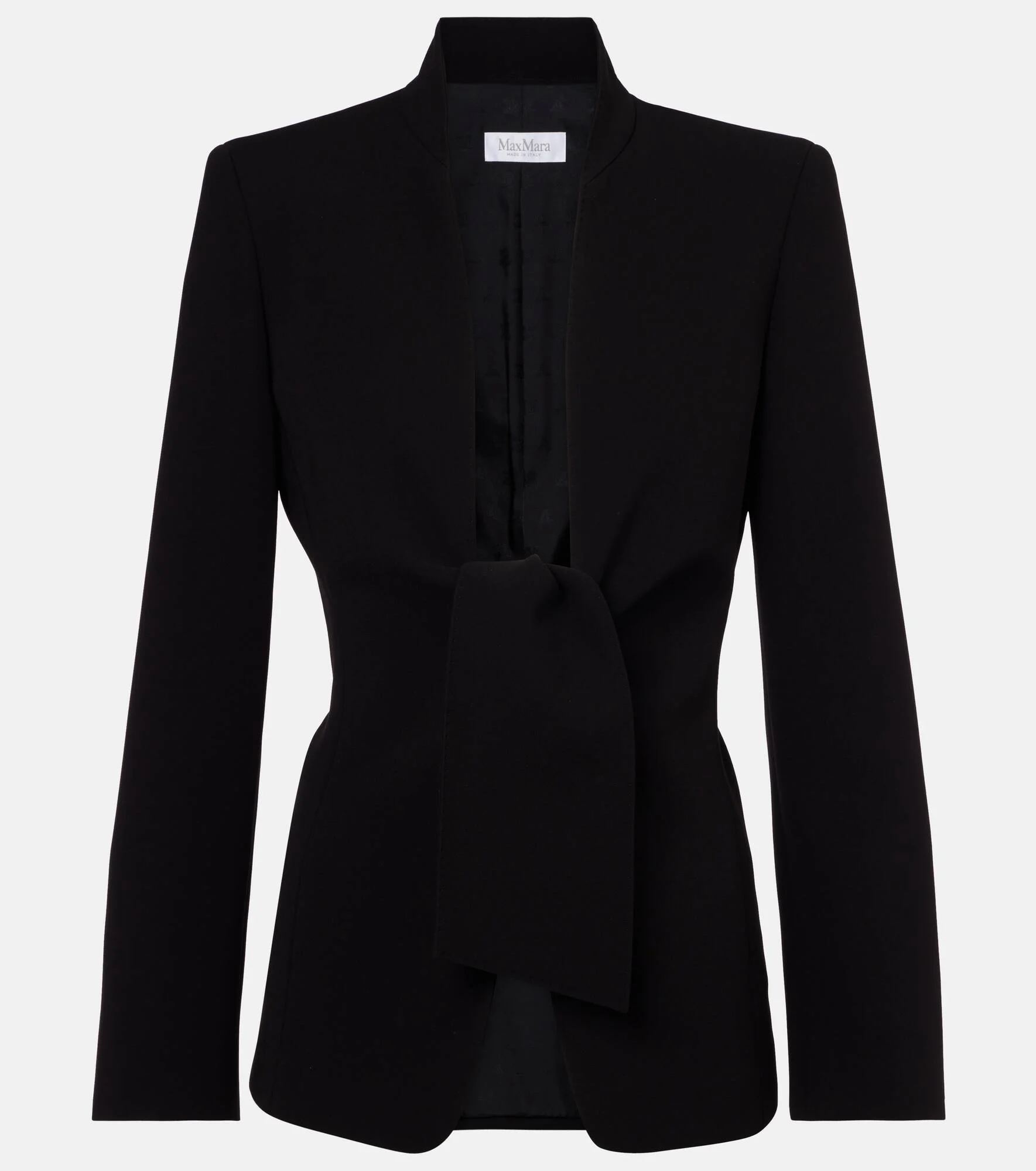 Boasting a rich manufacturing history, Max Mara represents the quintessence of Italian sophistication and expertise. Made from compact cady, the Ghiotto blazer is defined by elegant self-ties at the front. Product Details - Material: 65% triacetate, 35% polyester - Care instructions: dry clean - Made in Italy - Designer color name: Nero - Item color: black - Lining: 65% acetate, 35% polyester - Blazer - Closure: self-ties - Collarless - Item number: P01079095 Size & Fit - True to size - Shoulder pad inserts - Cinched waist - Non-stretchy fabric - Falls to the hip - The model seen in the picture is 178cm-5'10" and wearing a size DE 34