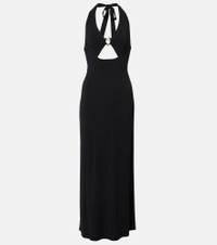 Bring uncomplicated refinement into your collection with Max Mara's designs, such as the Ghiotto maxi dress. It's made from fluid viscose with a halter neckline and a front cutout – accented with subtle logo detailing. Product Details - Material: 95% viscose, 5% elastane - Care instructions: hand wash - Made in Tunisia - Designer color name: Nero - Item number: P01035654 Size & Fit - True to size - Low back - Fitted - Stretchy fabric - slit length 50cm-19.5" - The model seen in the picture is 178cm-5'10" and wearing a size XS