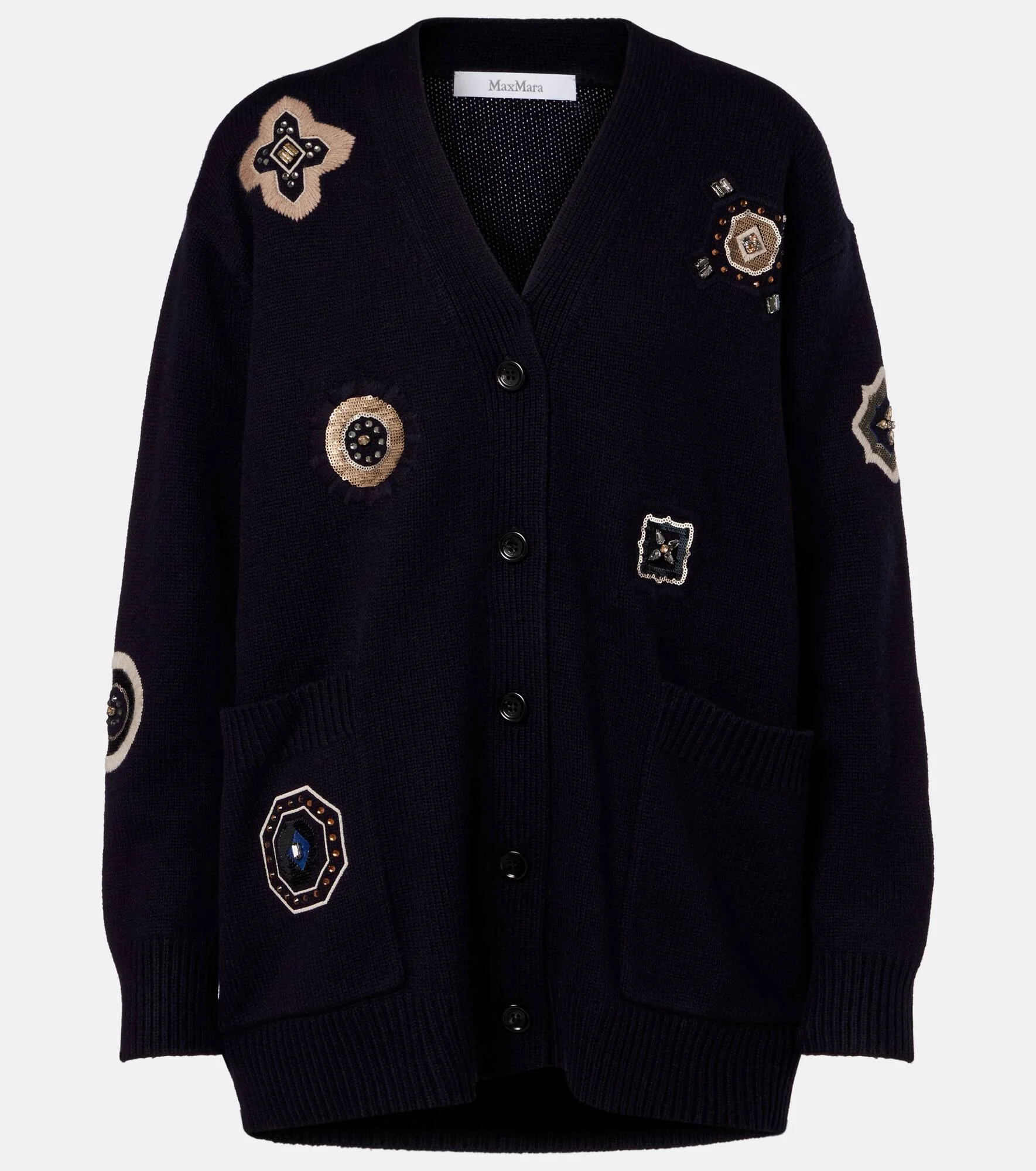 The Gioire cardigan from Max Mara infuses cold days with Italian style. Made from a ribbed-knit wool and cashmere blend, the style features a classic buttoned front. Product Details - Material: 70% wool, 30% cashmere - Care instructions: hand wash - Made in China - Color: blue - Designer color name: Cardigan Fondo - Item color: blue - Contains non-textile parts of animal origin - Closure: buttoned front - Pockets: patch pockets - Cuff: ribbed - Hem: ribbed - Item number: P01120736 Size & Fit - True to size - Dropped shoulders - Designed for a loose fit - Slightly stretchy fabric - Falls below the hip - The model seen in the picture is 178cm-5'10" and wearing a size XS