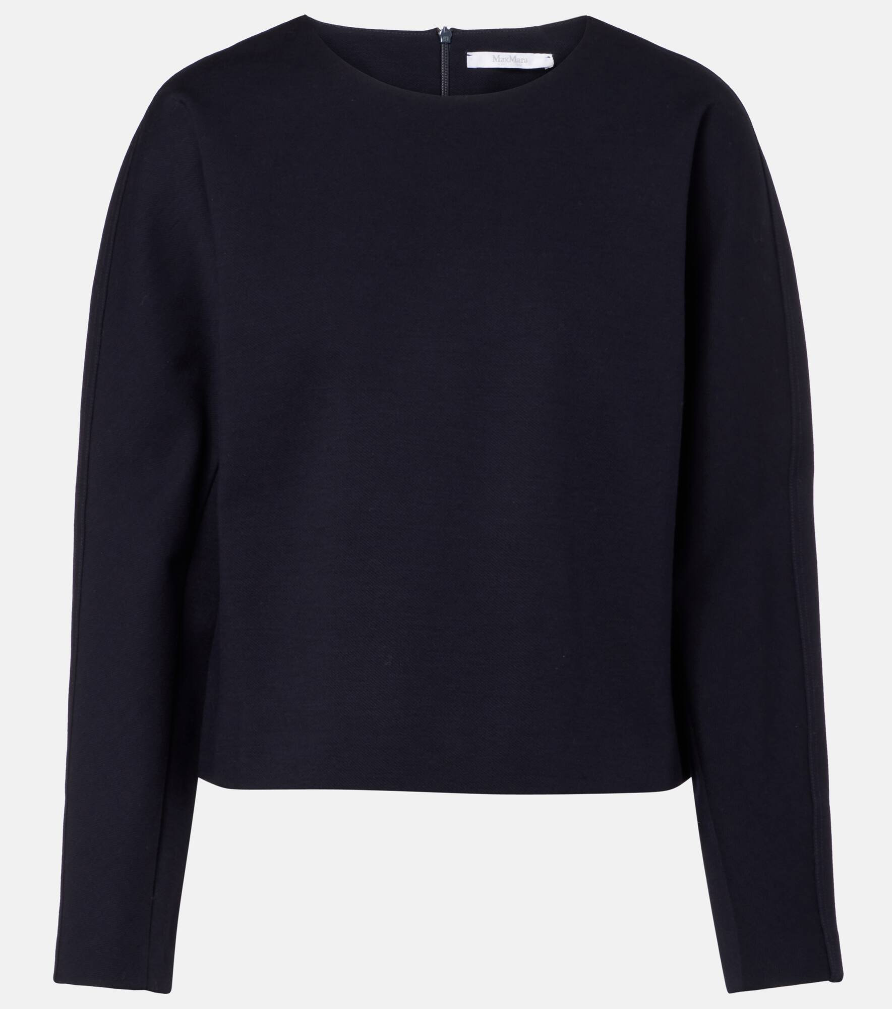 The Girello top from Max Mara is crafted in Italy from a wool and cotton blend, offering comfort and timeless appeal. This versatile wardrobe staple features long sleeves, zip-back closure and a refined silhouette. Product Details - Material: 62% wool, 33% cotton, 5% elastane - Care instructions: hand wash - Made in Italy - Designer color name: Blue Navy - Item color: blue - Closure: concealed zipped back - Item number: P01094312 Size & Fit - True to size - Straight fit - Falls to the hip - The model seen in the picture is 178cm-5'10" and wearing a size XS