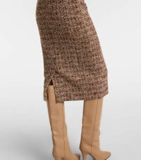 Boasting a rich manufacturing history, Max Mara represents the quintessence of Italian sophistication and expertise. The Giugno midi dress is crafted from cotton and wool-blend tweed into a short-sleeved, fitted silhouette. Product Details - Material: 48% cotton, 37% wool, 10% polyester, 4% polyamide, 1% elastane - Care instructions: dry clean - Made in Romania - Designer color name: DIS.P.D.P - Item color: multicolor, brown - Lining: 95% acetate, 5% elastane - Closure: concealed zipped back - Short vent - Item number: P01090704 Size & Fit - True to size - Fitted - Stretchy fabric - slit length 21cm-8.5" - The model seen in the picture is 178cm-5'10" and wearing a size DE 34