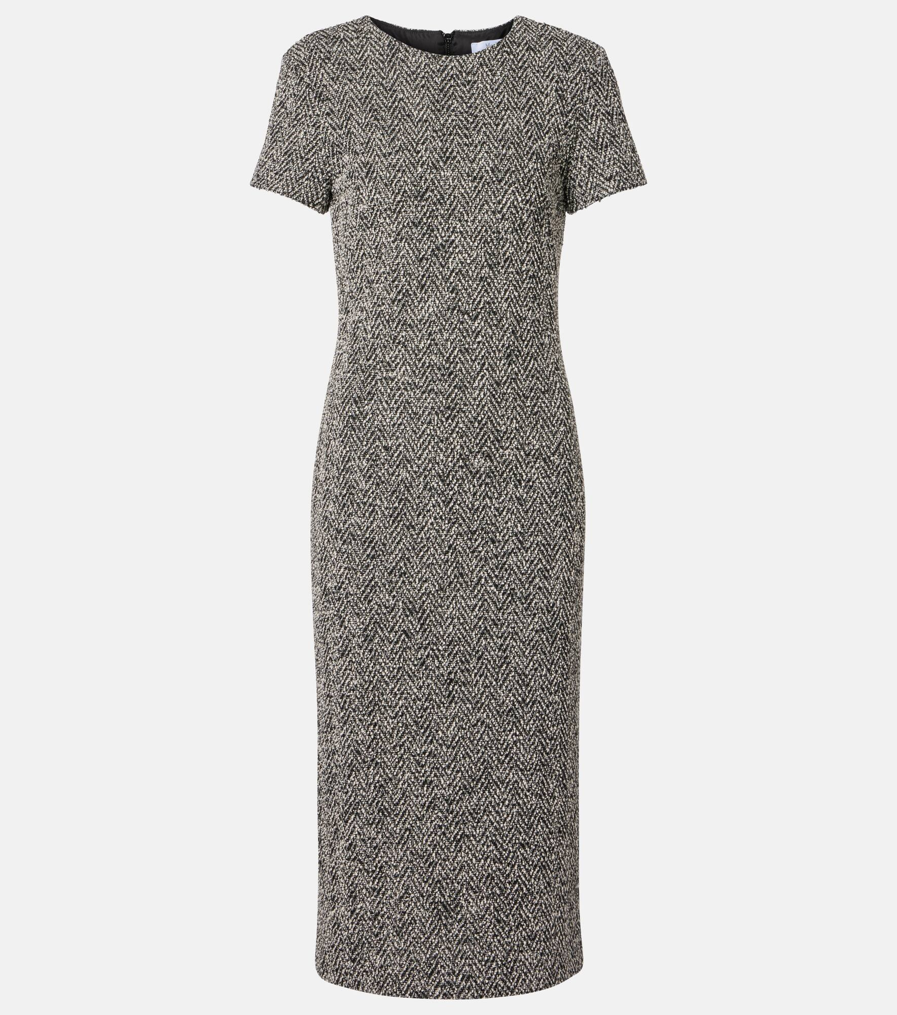 Max Mara represents the quintessence of Italian sophistication and expertise. Crafted from a soft cotton and wool blend, the Giugno midi dress is designed with a chevron pattern, short sleeves and a zip back closure. Product Details - Material: 48% cotton, 37% wool, 10% polyester, 4% polyamide, 1% elastane - Care instructions: dry clean - Made in Romania - Designer color name: Dis. Chevron - Item color: black, white - Lining: 95% acetate, 5% elastane - Closure: zipped back - Short vent - Fully lined - Item number: P01090703 Size & Fit - True to size - Fitted - Stretchy fabric - slit length 21cm-8.5" - The model seen in the picture is 178cm-5'10" and wearing a size DE 34