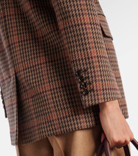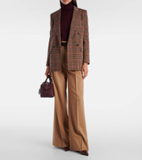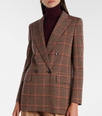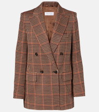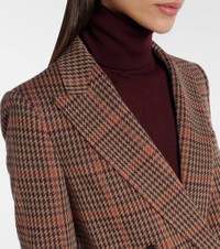 Boasting a rich manufacturing history, Max Mara represents the quintessence of Italian sophistication and expertise. The Guelfo double-breasted blazer showcases a classic checked pattern and is tailored with padded shoulders to create a structured silhouette. Product Details - Material: 59% wool, 41% cotton - Care instructions: dry clean - Made in Italy - Designer color name: Galles - Item color: brown, multicolor - Contains non-textile parts of animal origin - Lining: 65% acetate, 35% polyester - Pockets: flap pockets - Cuff: four buttons - Peak lapel - Closure: buttoned front - Item number: P01090708 Size & Fit - True to size - Shoulder pad inserts - Designed for a loose fit - Slightly stretchy fabric - Falls below the hip - The model seen in the picture is 178cm-5'10" and wearing a size DE 34
