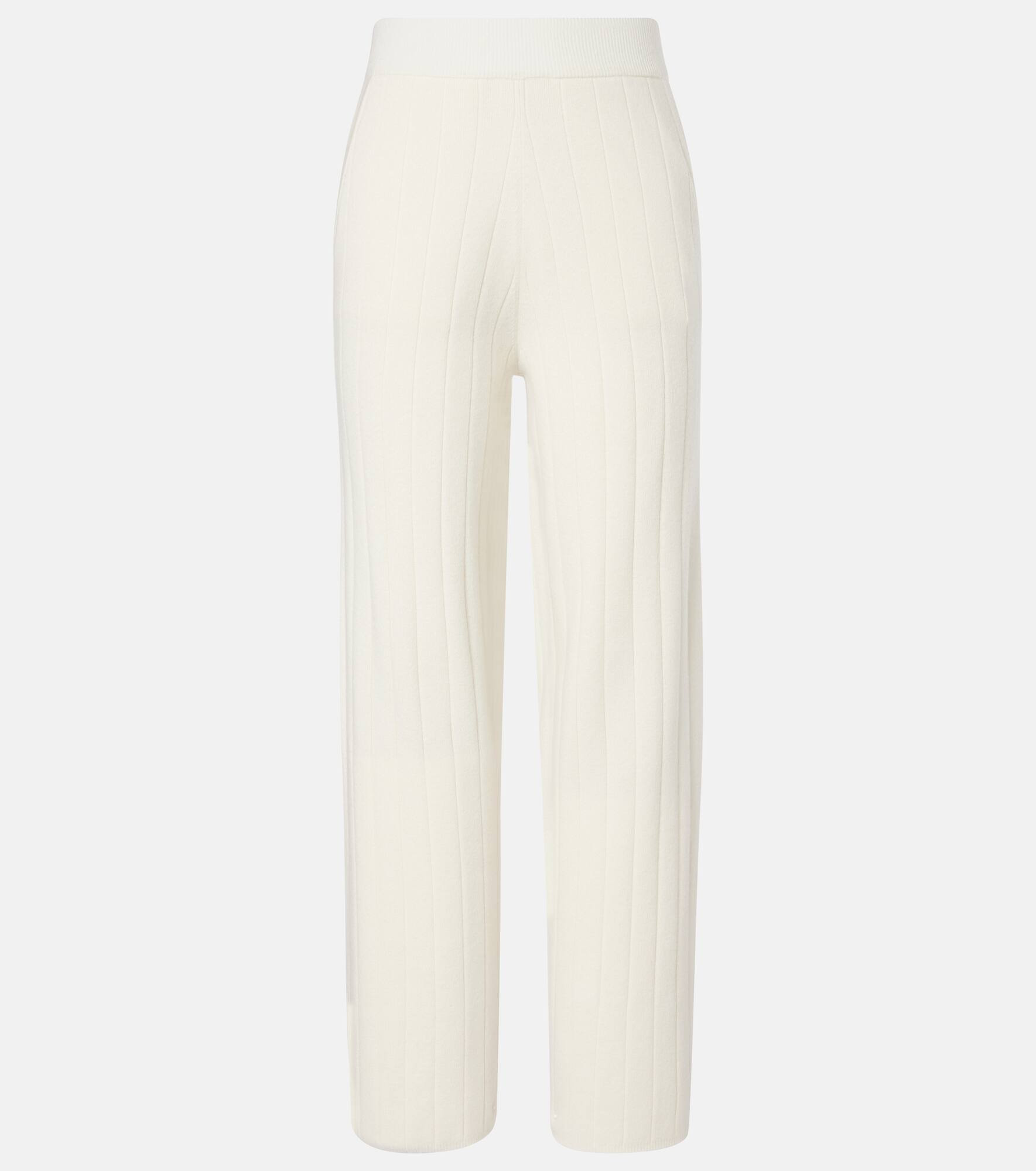 Boasting a rich manufacturing history, Max Mara represents the quintessence of Italian sophistication and expertise. The Jardin sweatpants are made with ribbed-knit cashmere and feature an elasticated waistband for extra comfort. Product Details - Material: 100% cashmere - Care instructions: hand wash - Made in China - Designer color name: Bianco - Item color: white - Pockets: side slit pockets - Elasticated waistband - Hem: ribbed - Includes: dust bag - Item number: P01094297 Size & Fit - True to size - Elasticated waist - Stretchy fabric - Straight leg - High-waisted - The model seen in the picture is 178cm-5'10" and wearing a size XS
