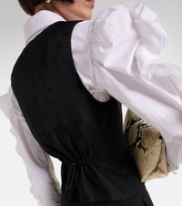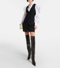 Product Details - Material: 78% viscose, 16% polyamide, 6% elastane - Care instructions: do not wash - Made in Romania - Designer color name: Nero - Pockets: patch pockets - Closure: buttoned front - Material II: 65% acetate, 35% polyester - Material III: 100% polyester - Contains non-textile parts of animal origin - Item number: P00929589 Size & Fit - True to size - Cinched waist - Non-stretchy fabric - Slightly cropped - DT = German size - The model seen in the picture is 178cm-5'10" and wearing a size DT 34