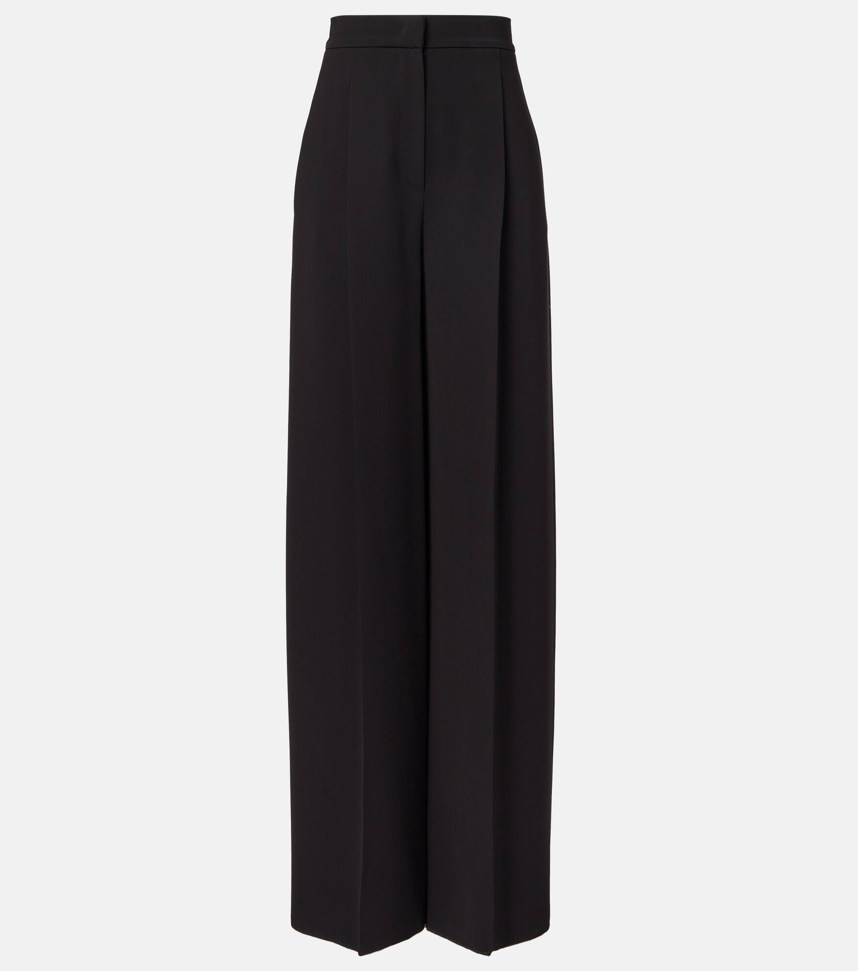 Boasting a rich manufacturing history, Max Mara represents the quintessence of Italian sophistication and expertise. Primed to become a timeless wardrobe building block, the Laccato wide-leg pants are made from compact cady and feature front darts. Product Details - Material: 65% triacetate, 35% polyester - Care instructions: machine wash at 30 degrees - Made in Italy - Designer color name: Nero - Item color: black - Closure: zip, hook, and button fastening - Pockets: side slit pockets - Single pleat - Item number: P01079536 Size & Fit - True to size - Non-stretchy fabric - Wide-leg - High-waisted - Unhemmed for tailoring - The model seen in the picture is 178cm-5'10" and wearing a size DE 34