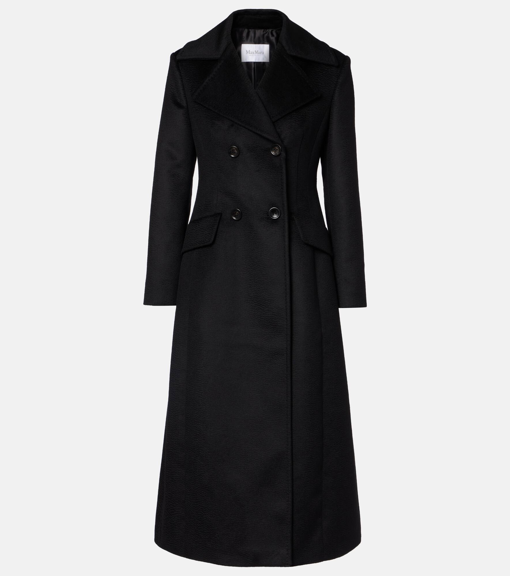 The Lepanto coat from Max Mara is a timeless addition to any well-curated wardrobe. The double-breasted design features notched lapels, flap pockets, and a flared hem for added sophistication. Product Details - Material: 100% camel hair - Care instructions: dry clean - Made in Italy - Designer color name: Nero - Item color: black - Lining: 100% viscose - Contains non-textile parts of animal origin - Notched lapel - Closure: double-breasted (four buttons) - Pockets: flap pockets - Cuff: four buttons - Item number: P01090641 Size & Fit - Fits small to size - we recommend trying one size larger - Shoulder pad inserts - Cinched waist - Non-stretchy fabric - The model seen in the picture is 178cm-5'10" and wearing a size DE 36