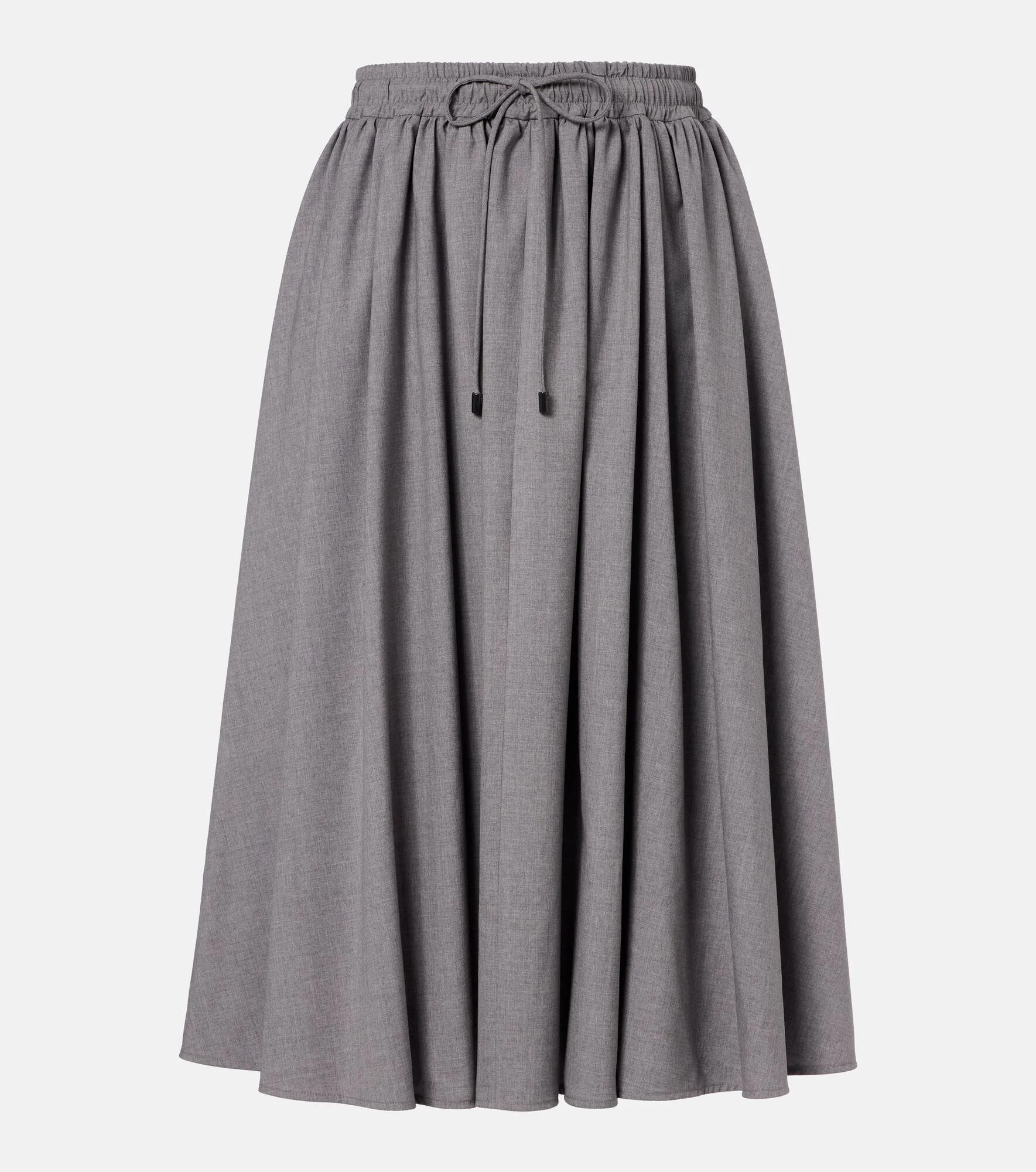Boasting a rich manufacturing history, Max Mara represents the quintessence of Italian sophistication and expertise. The Livrea midi skirt is made from virgin wool and has soft pleats due to its full A-line silhouette. Product Details - Material: 100% virgin wool - Care instructions: dry clean - Made in Italy - Color: grey - Designer color name: Grigio - Elasticated drawstring waist - Pockets: side slit pockets - Item number: P01120698 Size & Fit - True to size - Elasticated waist - Adjustable at the waist - Non-stretchy fabric - High-waisted - The model seen in the picture is 178cm-5'10" and wearing a size DE 34