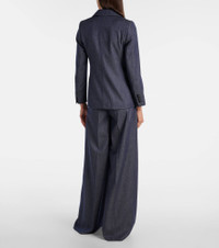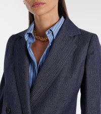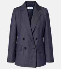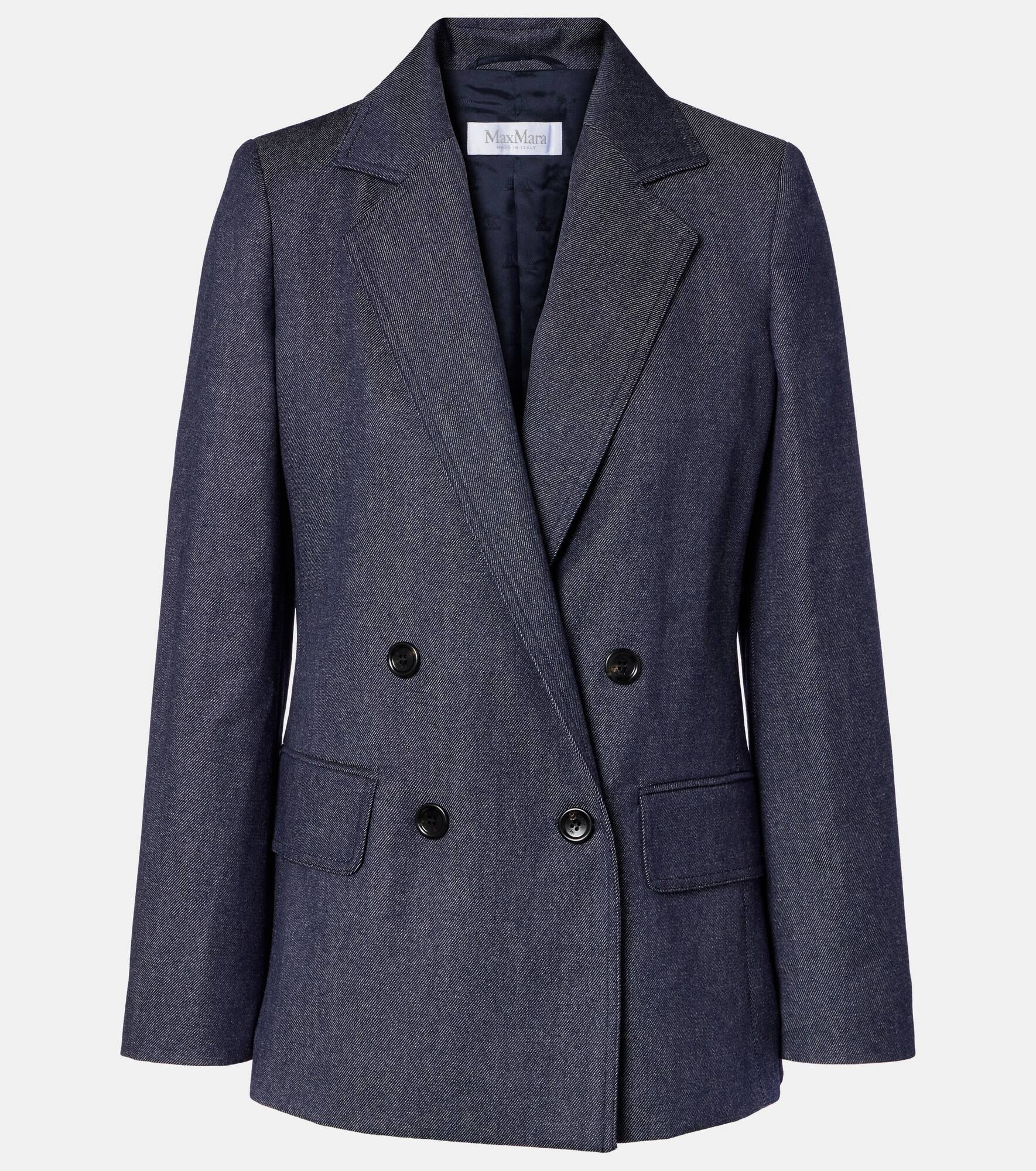 Crafted in Italy from virgin wool, the Locarno jacket from Max Mara features a double-breasted style. This design is finished with flap pockets and padded shoulders. Product Details - Material: 100% virgin wool - Care instructions: dry clean - Made in Italy - Designer color name: Blu Marino/B.Co - Item color: blue - Lining: 65% acetate, 35% polyester - Contains non-textile parts of animal origin - Closure: double-breasted (four buttons) - Cuff: four buttons - Vent: no vent - Pockets: flap pockets - Item number: P01090647 Size & Fit - True to size - Shoulder pad inserts - Straight fit - Non-stretchy fabric - Falls below the hip - The model seen in the picture is 178cm-5'10" and wearing a size DE 34
