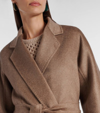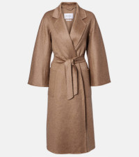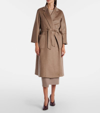 Max Mara's signature wrap coats are crafted from the highest quality materials to a timeless silhouette. Made from pure cashmere, the Ludmilla coat is a timeless staple for the cold season and features a detachable belt and patch pockets. Product Details - Material: 100% cashmere - Care instructions: dry clean - Made in Italy - Designer color name: Cacha Scuro - Item color: beige - Pockets: patch pockets - Attached belt - Closure: open front - Item number: P01090297 Size & Fit - True to size - Loose fit, comes with belt - Non-stretchy fabric - The model seen in the picture is 178cm-5'10" and wearing a size DE 34