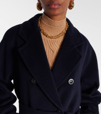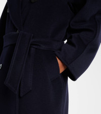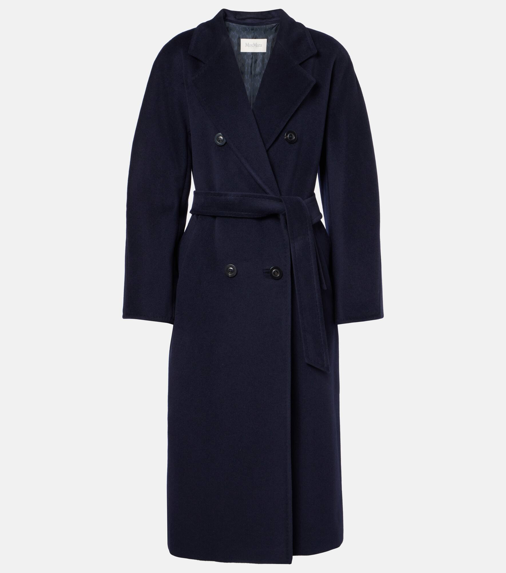Crafted in Italy from wool and cashmere, the Madame wrap coat from Max Mara showcases a double-breasted style. This design is finished with notched lapels and welt pockets. Product Details - Material: 90% wool, 10% cashmere - Care instructions: dry clean - Made in Italy - Designer color name: Blu Marino - Item color: blue - Lining: 98% cupro, 1% metallic fibres, 1% viscose - Contains non-textile parts of animal origin - Notched lapel - Closure: double-breasted - Pockets: welt pockets - Vent: no vent - Self-tie belt - Item number: P01079092 Size & Fit - True to size - Shoulder pad inserts - Loose fit, comes with belt - Non-stretchy fabric - The model seen in the picture is 178cm-5'10" and wearing a size DE 34