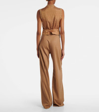 Boasting a rich manufacturing history, Max Mara represents the quintessence of Italian sophistication and expertise. The Madre vest features a ribbed-knit wool and cashmere-blend front panel, and a satin back panel detailed with an adjustable belt and the brand's logo. Product Details - Material: 67% wool, 29% cashmere, 3% polyamide, 1% elastane - Care instructions: dry clean - Made in Romania - Designer color name: Cammello - Item color: beige - Material II: 65% acetate, 35% polyester - Lining: 65% acetate, 35% polyester - Contains non-textile parts of animal origin - Closure: buttoned front - Attached belt - Item number: P01090689 Size & Fit - True to size - Straight fit - Adjustable at the waist - Partly stretchy fabric - Slightly cropped - The model seen in the picture is 178cm-5'10" and wearing a size XS