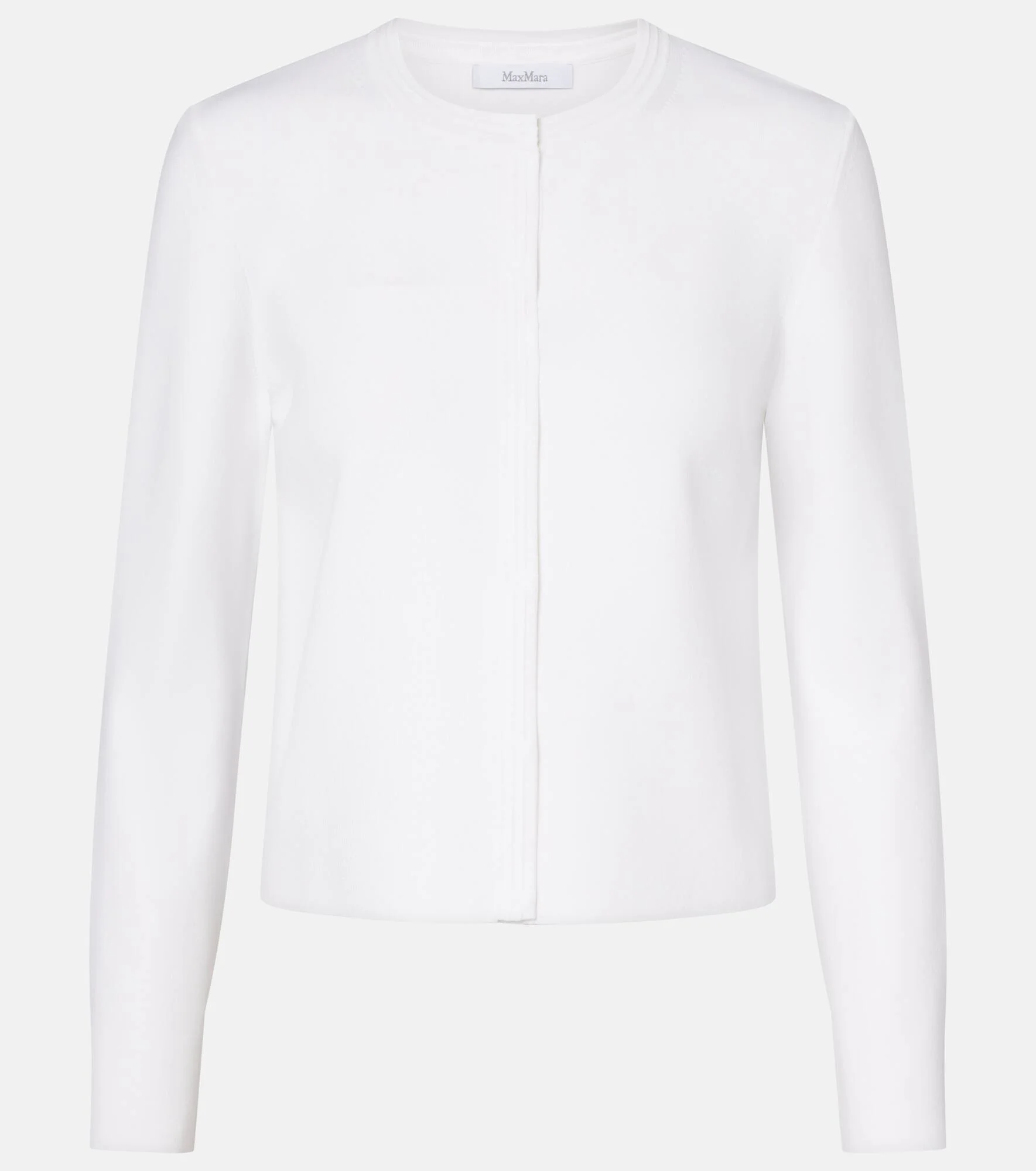 Boasting a rich manufacturing history, Max Mara represents the quintessence of Italian sophistication and expertise. Defined by polished lines, the Master cardigan is made from a knit fabric with a snap-buttoned front. Product Details - Material: 65% viscose, 35% polyamide - Care instructions: hand wash - Made in China - Color: white - Designer color name: Bianco Ottico - Closure: snap-buttoned front - Item number: P01152554 Size & Fit - True to size - Straight fit - Slightly stretchy fabric - Slightly cropped - The model seen in the picture is 178cm-5'10" and wearing a size XS