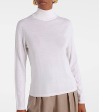 Max Mara showcases its manufacturing expertise and high-quality materials with the Meana sweater. A classic turtleneck silhouette that never goes out of style, the piece is knitted from pure cashmere rendered in white. Product Details - Material: 100% cashmere - Care instructions: hand wash - Made in China - Designer color name: Bianco - Item color: white - Collar: turtleneck - Cuff: ribbed - Hem: ribbed - Item number: P01090276 Size & Fit - True to size - Cinched waist - Stretchy fabric - Falls to the hip - The model seen in the picture is 178cm-5'10" and wearing a size XS