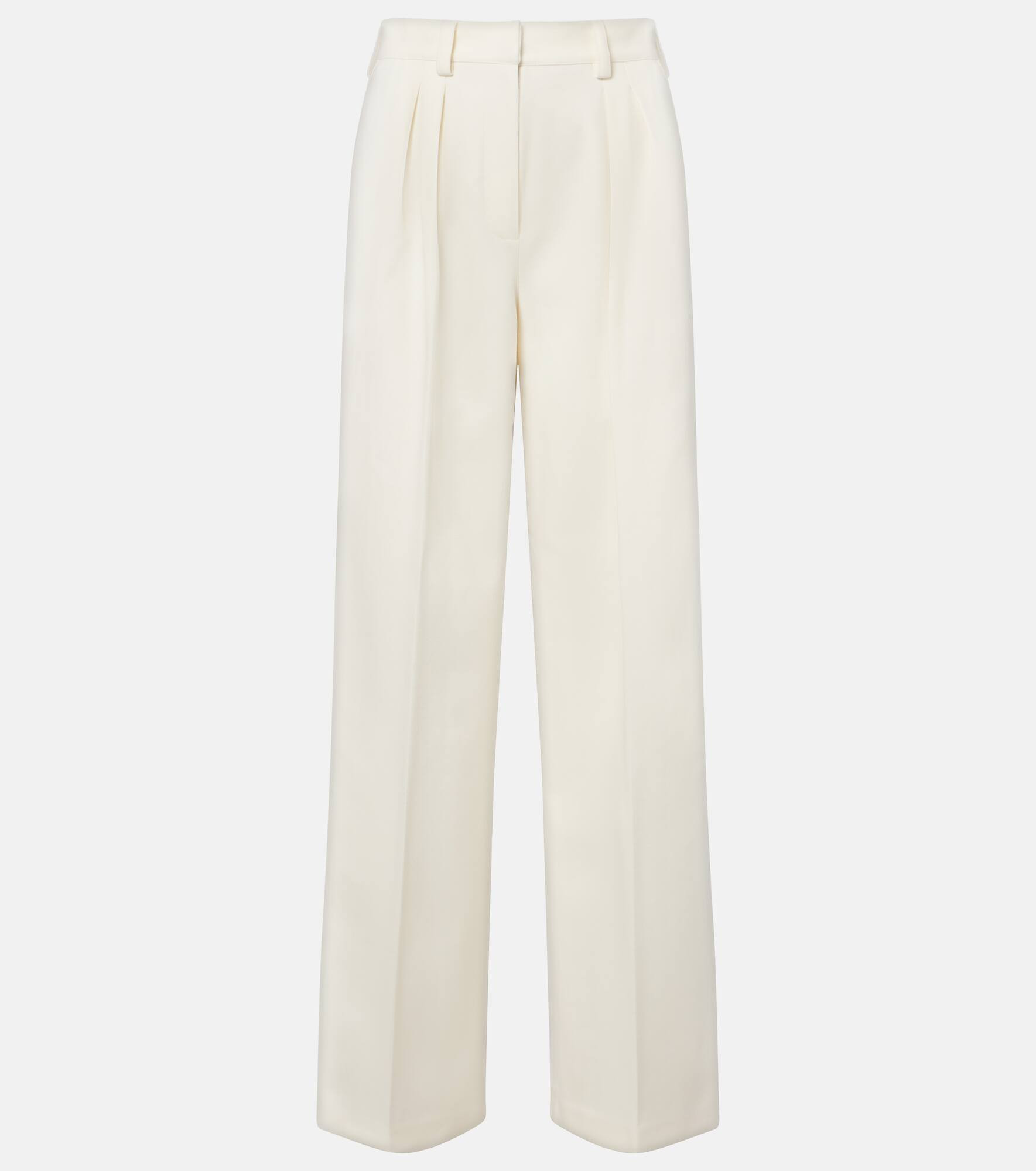 The Molo pants from Max Mara are crafted from a soft wool-cotton blend and feature a pleated silhouette for added sophistication. The design includes side and back pockets and a zip-and-hook closure. Product Details - Material: 62% wool, 33% cotton, 5% elastane - Care instructions: dry clean - Made in Italy - Designer color name: Avorio - Item color: white - Belt loops - Pockets: side slit pockets, back pockets - Closure: zipper fly, button and hook fastenings - Item number: P01094306 Size & Fit - True to size - Non-stretchy fabric - Wide-leg - High-waisted - The model seen in the picture is 178cm-5'10" and wearing a size XS