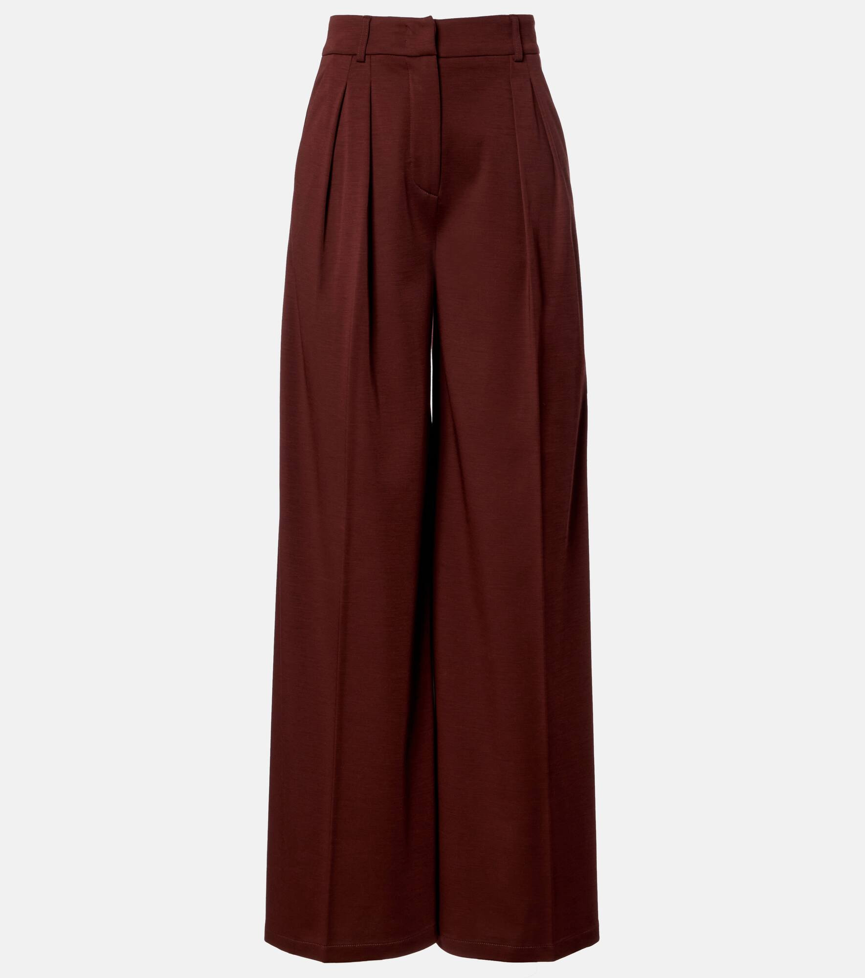 Crafted from wool, the high-waisted Natale pants by Max Mara feature a wide-leg silhouette. Exuding the brand’s signature sophistication, this pair includes zip, hook-and-button fastening, slant and back pockets, and creases for an elegant finish. Product Details - Material: 100% wool - Care instructions: hand wash - Made in China - Designer color name: Ciliegia - Item color: burgundy - Closure: zipper fly, button and hook fastenings - Pockets: side slit pockets, back pockets - Belt loops - Item number: P01094308 Size & Fit - True to size - Sizing adapted to taller women - Slightly stretchy fabric - Wide-leg - High-waisted - The model seen in the picture is 178cm-5'10" and wearing a size XS